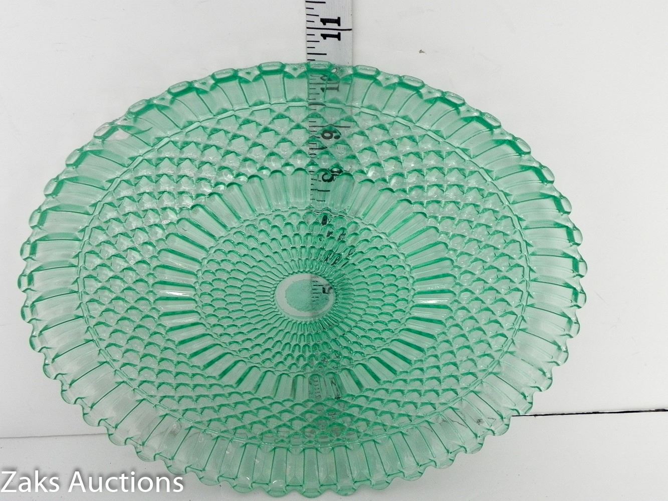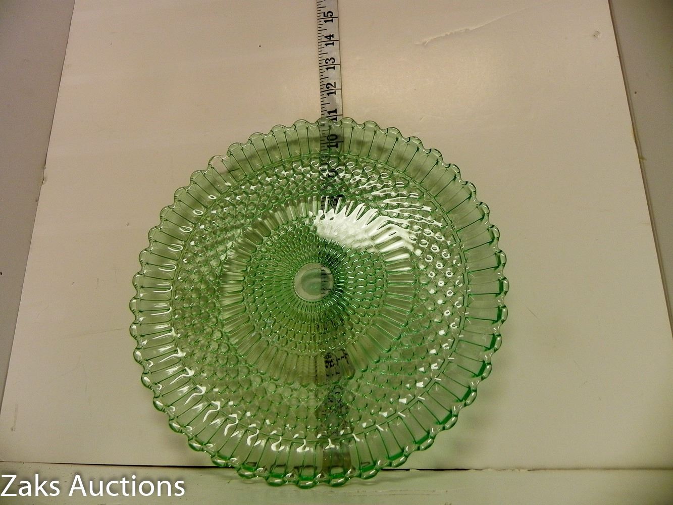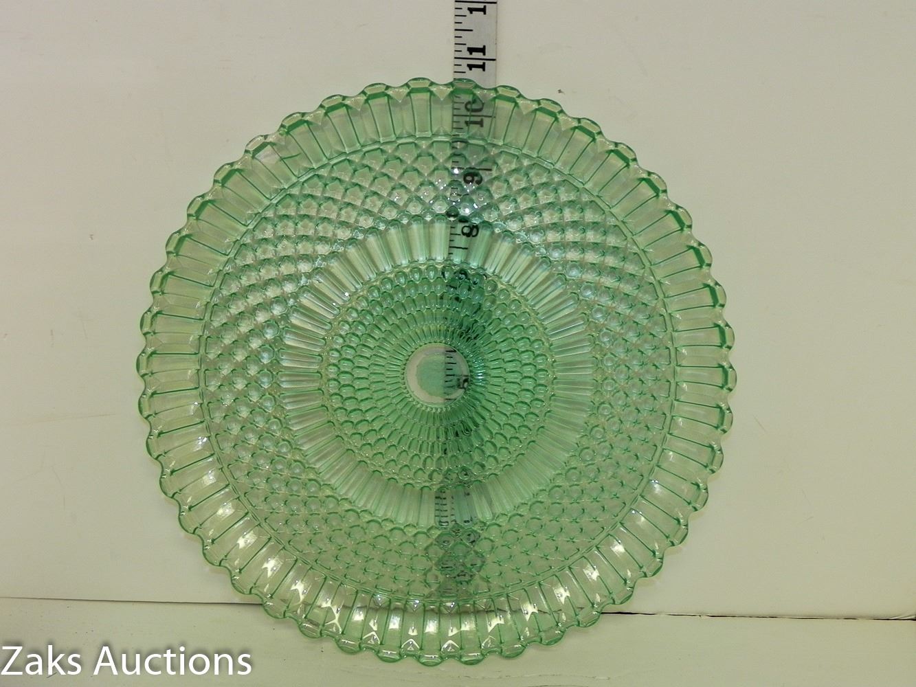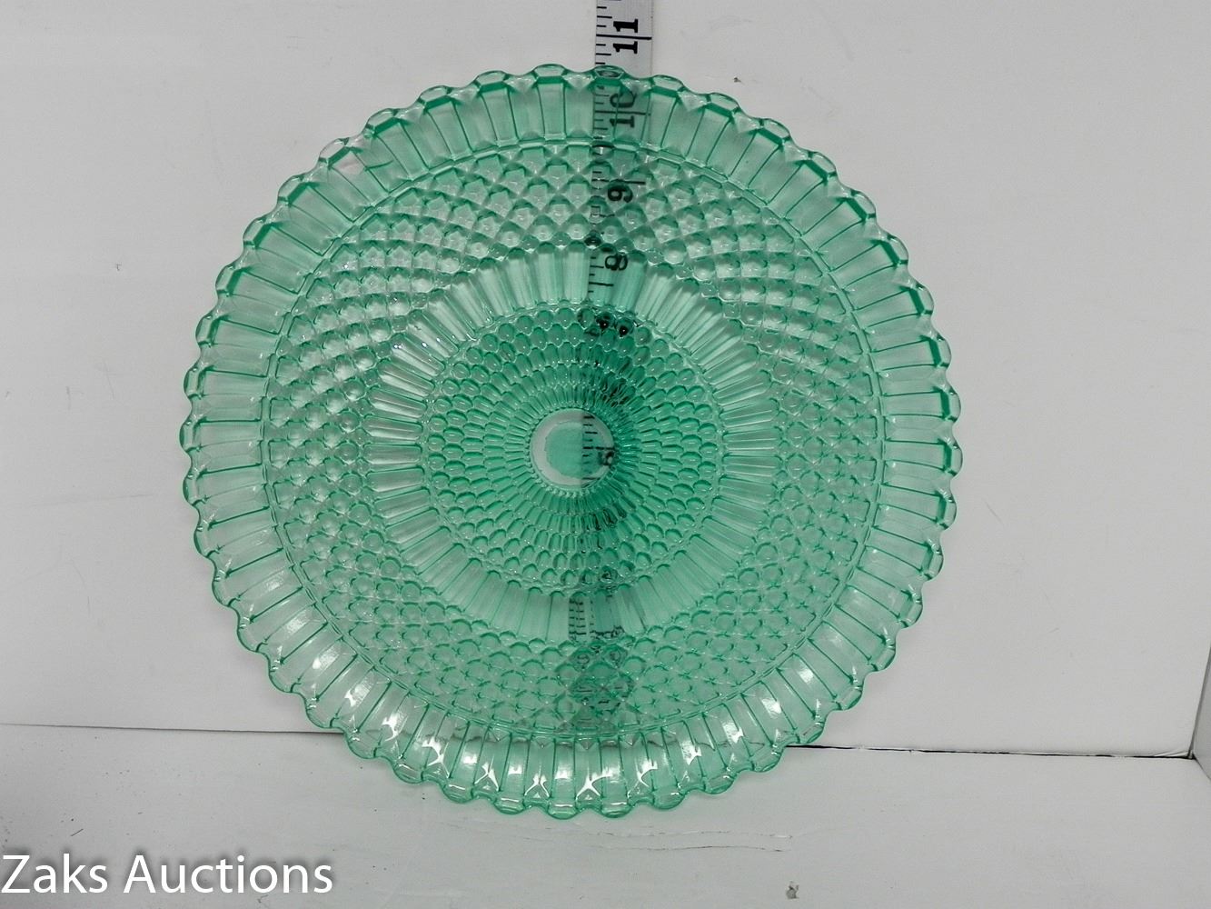 Beautiful Green Depression Glass Non-Footed Serving Plate. Has some minor damage, see all pictures