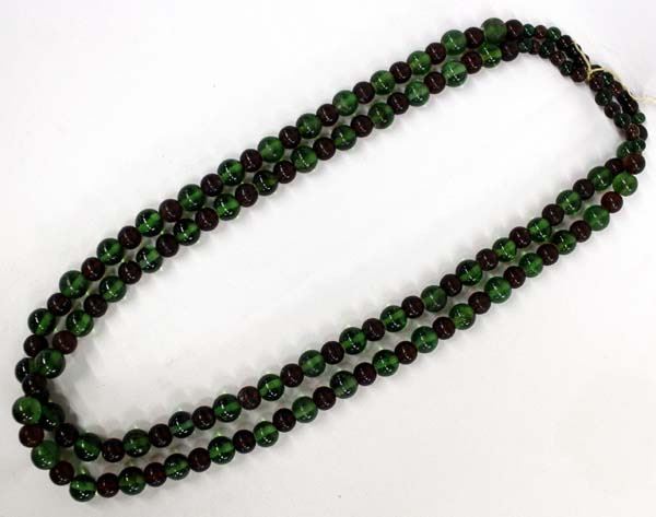 Beautiful Green and Red Glass Trade Beads, Double Strand, measure 36''L end to end and are string tied