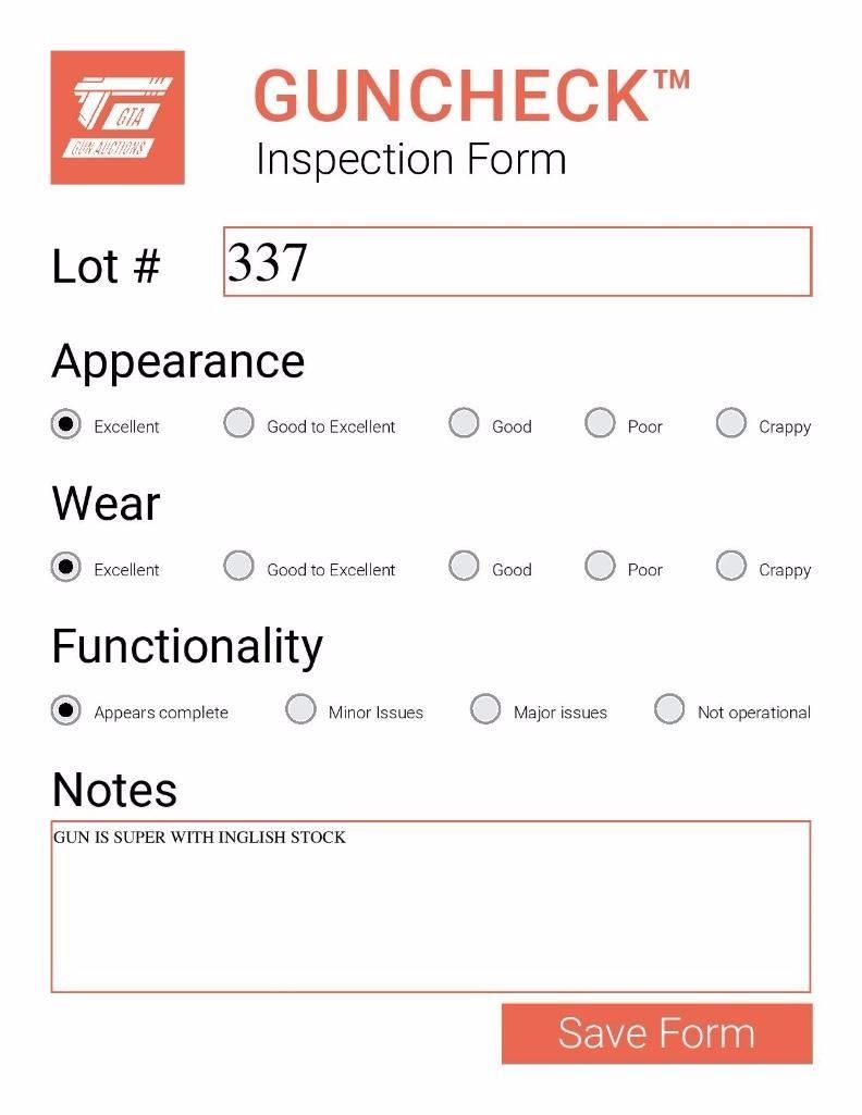 FIREARMS SALES CANADA: A valid P.A.L. is required to purchase firearms in Canada. Firearm registration applies to all restricted and prohibited firearms purchased for Canadians except firearms classified as antique and non-restricted. All restricted and prohibited firearms will have their transfer started on sale day. U.S. Bidders have sole responsibility for their purchases. If item has been purchased and bidder is unable import lots, the item or items will be sold at our next auction. Original buyer will be charged a commission on the resale. BUYERS PREMIUM & TAXES: All items purchased online through ICollector are subject to a 3% surcharge. In addition, all purchases will be charged a 15% buyers premium. Taxes in Canada are listed in 'Payment Instructions'. Item(s) purchased and shipped outside of Canada are not subject to taxes, however you may be responsible for customs or duty charges. TERMS & CONDITIONS: The highest bidder shall be the purchaser and the decision of the auctioneer relating to all matters is final. All sales are final and not subject to conditions. While we improve the quality transparency through GUNCHECKTM and CYCLECHECKTM?, all merchandise is sold in an 'as is' condition without recourse to the vendor. All goods advertised or displayed are subject to withdrawal prior to sale within the discretion of the auctioneer. The Auctioneers may reject a bid at their discretion without reason or explanation. TERMS OF PAYMENT: All items purchased by bidders will be charged to their Visa or Mastercard at the conclusion of the auction. If shipping is required for any purchase an additional charge will occur the day the item has been shipped. A $25.00 non processing fee will be added to any credit cards that we can't process. Please ensure that we have the correct number, expiry and cvv. Recurrent problem payers, may be banned from future sales. Sales All items will be sold “As Is' condition. ALL SALES ARE FINAL WITH NO REFUNDS OR EXCHANGES. GTA Guns and Gear Auctions Inc. does not guarantee nor make warranties on any lot sold. Ratings in the catalog are opinions. We acknowledge that errors may occur although we endeavor to give you accurate information in what is written. We strongly recommend to personally view any item you bid on. GTA Guns and Gear Auctions Inc. will not return or refund money if item is not exactly in the same condition as listed in catalog. No employee of GTA Guns and Gear Auctions Inc. is authorized to make on our behalf or that of the consignor, any representation or warranty, oral or written, with respect to any lot or item for sale.