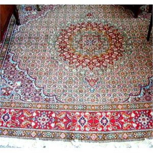 Beautiful Persian rug, from the Mood region of Iran. 100% wool, hand knotted. Great colors, red/blue/ivory. Superb pattern, exquisite detail. It's an almost perfect square in size 6'x7'. Wonderful condition. A beautiful accessory!