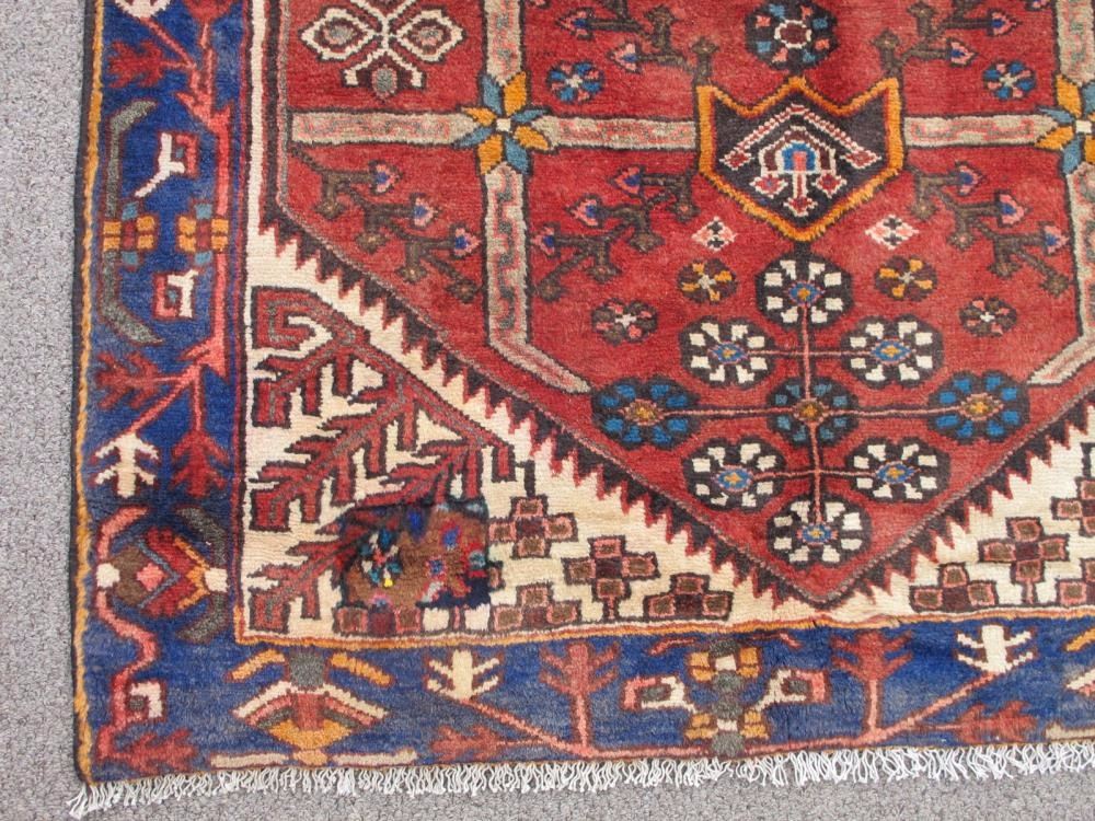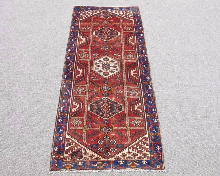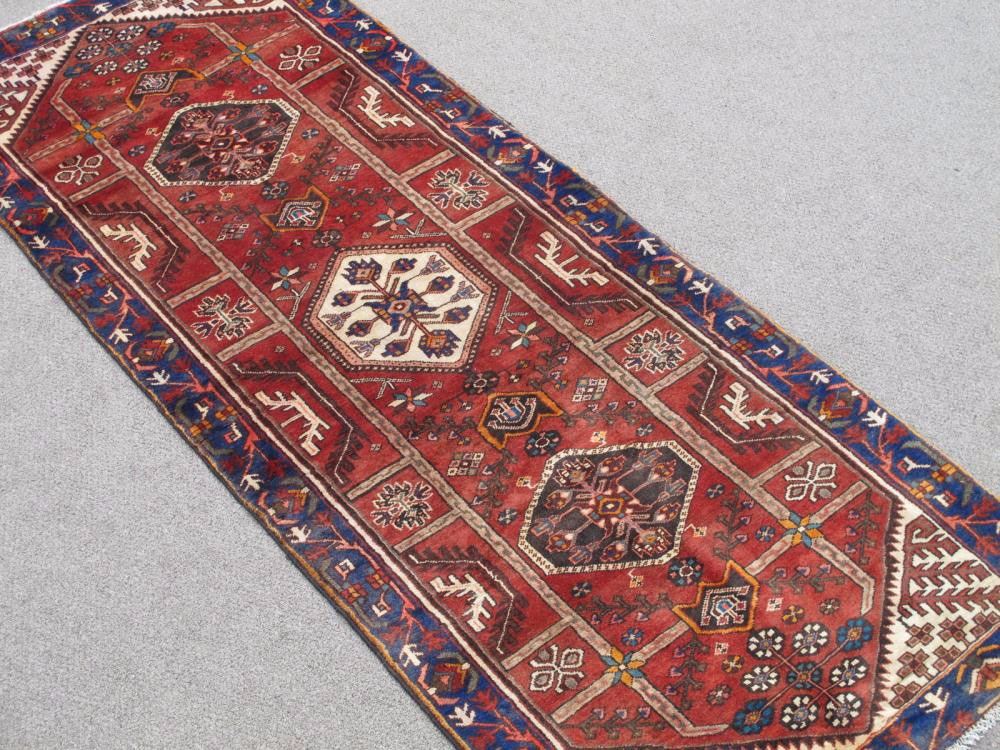Rug: Handmade Semi Antique Persian Bakhtiari Rug; Material: Fine quality baby lamb's wool pile, all natural vegetable dye; Size: 9.10 x 3.9 feet; Foundation: Cotton; Design: Persian Bakhtiari; Origin: Iran