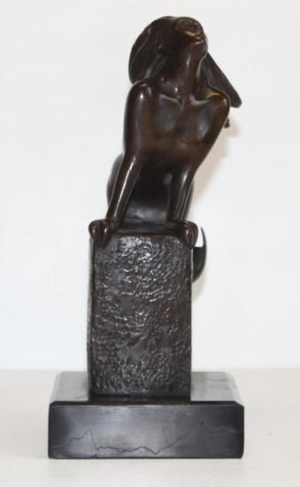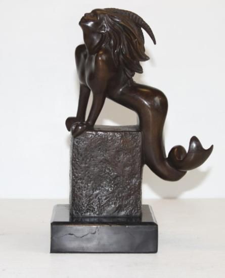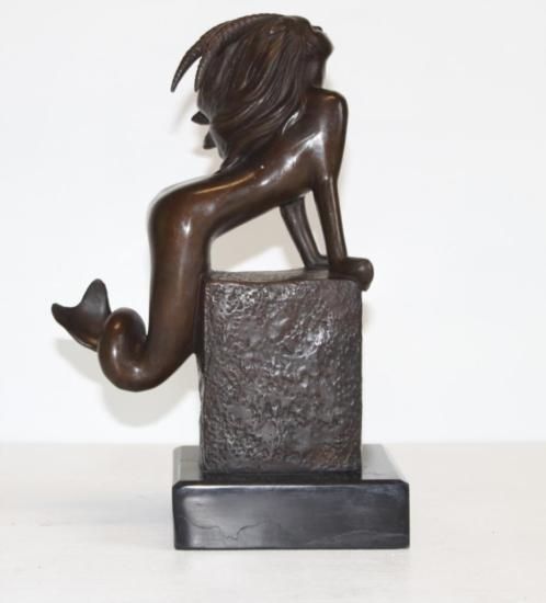 Beautiful Horned Hooved Mermaid, Bronze Sculpture, After Pinot 10"H x 4 1/2"W x 6 1/2"D 9lbs. This bronze sculpture was produced using the Lost Wax casting method. The Lost Wax Cast method is the most precise metal casting technique in existence, ensuring exquisite detail of the original host model which is usually sculpted in clay or wax. This Lost Wax casting method is an extremely labor intensive and expensive process, but the end results produce a Heirloom Quality Masterpiece!