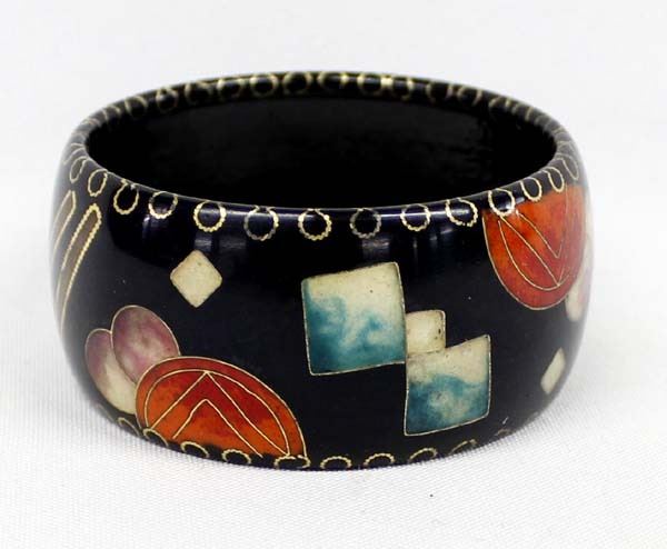 Beautiful Vintage Inlay Brass Cloisonne' and Enamel Bangle Bracelet, Geometric and Abstract designs, circumference measures 9'', gorgeous colors