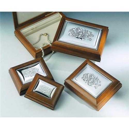 Almost pure silver (92.5% Pure Sterling Silver) Jewelry Boxes. Beautifully handcrafted works of art by Italian Artisans. Has a nice floral design and is felt lined on the inside. Made entirely out of real Walnut Wood, the Sterling Silver on top can be engraved to give it that truly personal and unique touch. These are of the highest quality stamped and marked with the purity of the silver, each one comes with a Certificate Of Authenticity, each one is a limited production item and surely to become a family heirloom. Limited Quantity's available. We have two sizes a large version which is what is represented in the listing and a smaller version which measures : 7" x 9" and can be purchased for $99.00. For additional photo's or information on this piece please contact us by clicking on the "EMAIL DEALER" button, we'll be happy to supply you with any information on this piece that is requested including a shipping quote if needed. Thank you for looking.