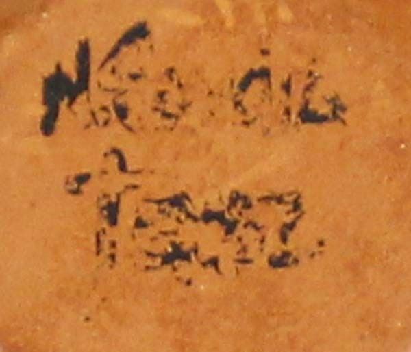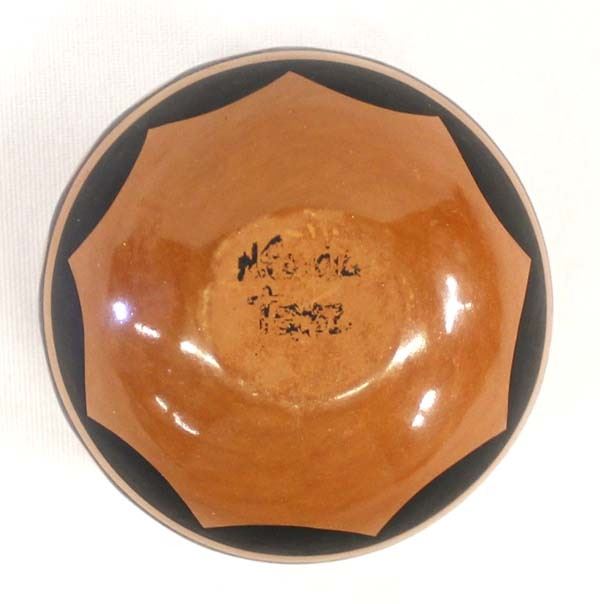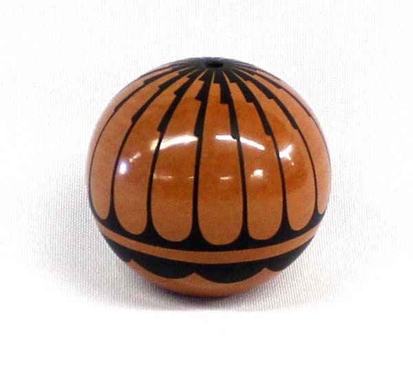 Beautiful Native American Jemez Stylized Feather Seed Jar, highly burnished and signed on the bottom, measures 2.5'' x 2.5''