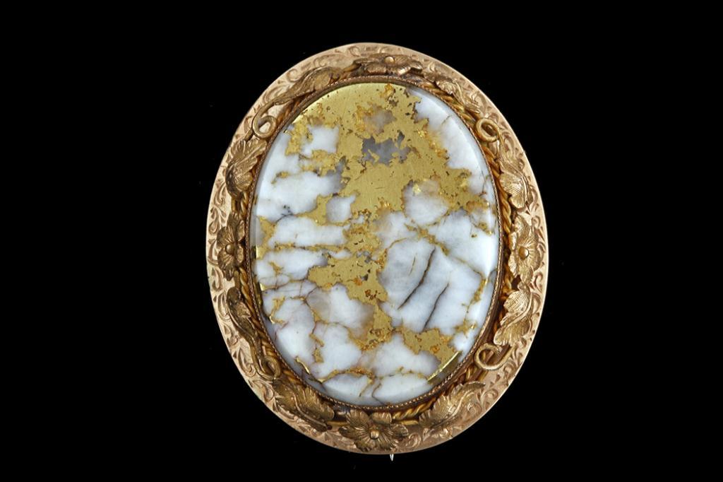 Beautiful Ladies Quartz Pendant Gold in quartz, set in yellow gold with floral design.Gold in quartz