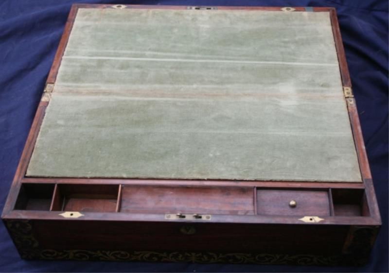 Beautiful Lap Desk, Deep, rich wood veneer over softer carcass wood. Dimensions10" deep, 6-1/2" high, 20" wide
