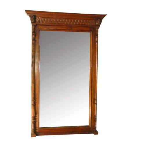 Large Oak Mirror with carved roman soldiers on top and beveled mirror. Excellent original condition. 37 1/2 X 66 inches.