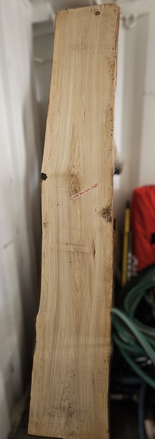 Beautiful Live Edge Spalted Black Poplar Slab 8' x 16.25" x 2.5"; Pictures can't do justice to the beautiful grain and colours; Great for rustic shelves, benches or coffee tables.