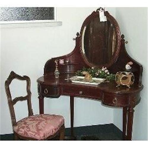 This is a beautiful Mahogany /dressing table. It is from /france and I purchased it in Belgium when I lived there. It is in excellent condition and it is from the late 1800's. Chair not included.