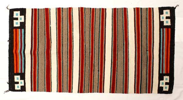 Beautiful Mexican Rug, measures 29.25'' x 58.5'', gorgeous vibrant colors, missing one tassel, some selvage and moth damage