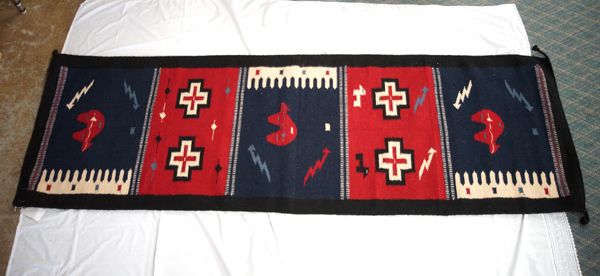 Beautiful Mexican Wool Rug Runner, measures 92''L x 32''W, beautiful warm colors with bear designs, 4 cornered tassels