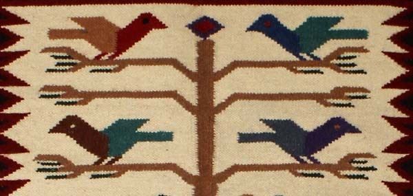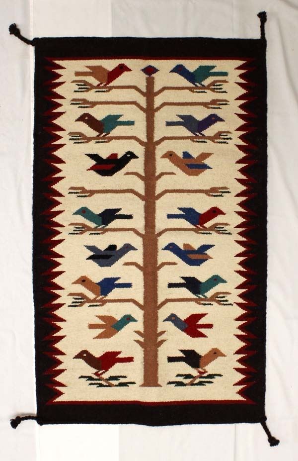 Beautiful Mexican Wool Tree of Life Rug, measures 27'' x 44.5'', 4 cornered tassels intact, like new condition