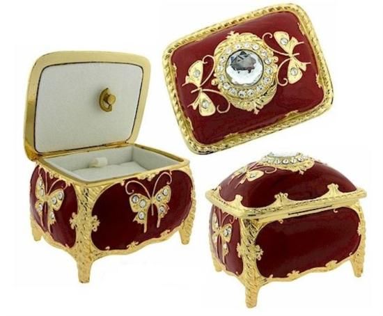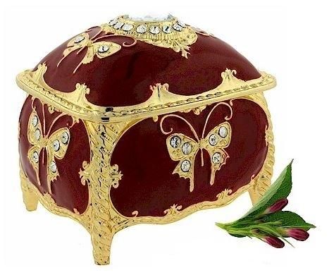 Enamael, Pewter, Crystal.Approximate Size: 2.3in x 3in x 2.7in Hinged lid with ring and pendant pad