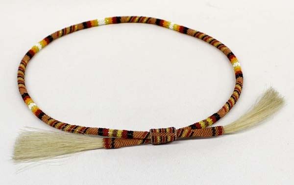 Beautiful Native American Beaded Horse Hair Hat Band, measures 30''L end to end x .5''W