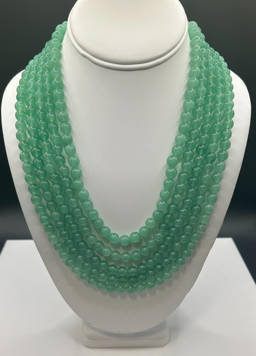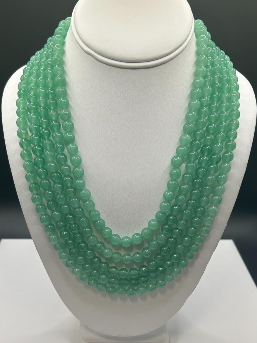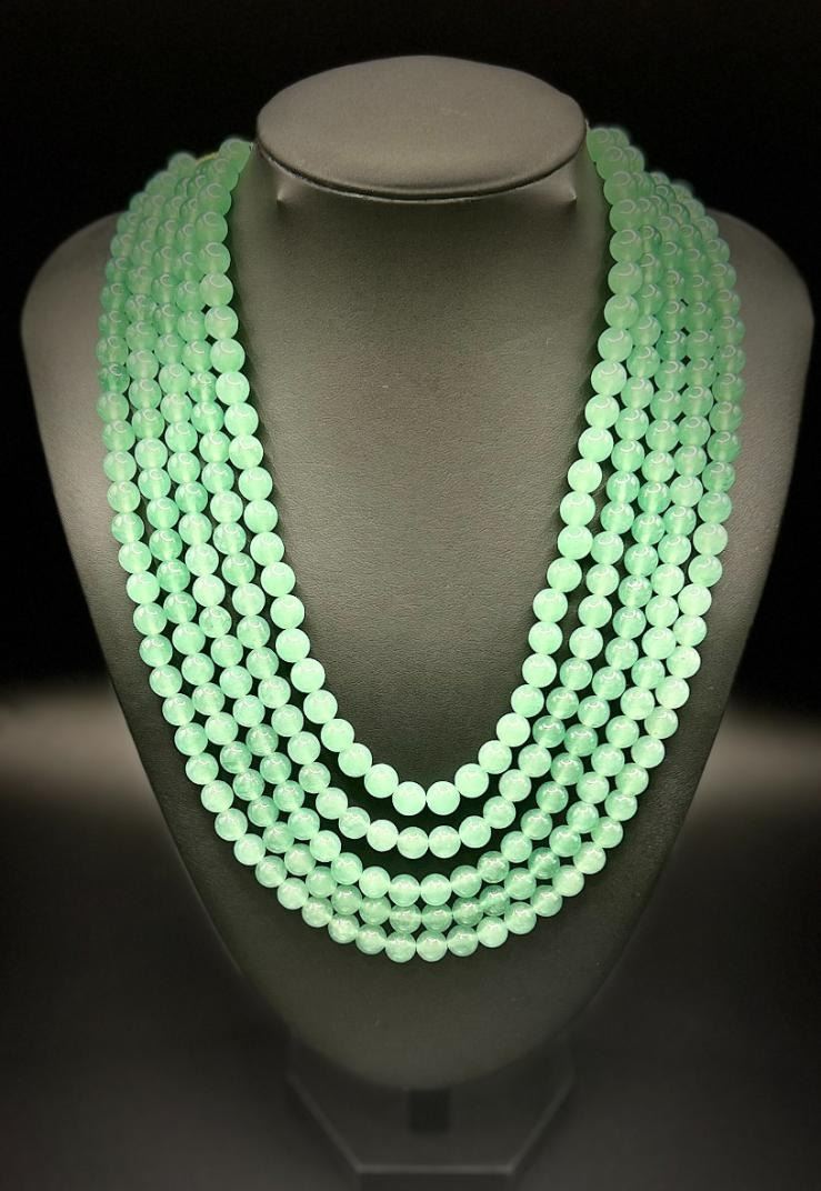 Beautiful Rare Natural 1007 Cttw. Mined From The Earth 5 Strand Aquamarine Necklace. These fine polished beads are approx. 8 mm. and are near perfect round. The neck size is adjustable from as small as 16 " to 28 " to go with almost any outfit. This gorgeous necklace is ready for any occasion. Treatment : None. Origin : Brazil.