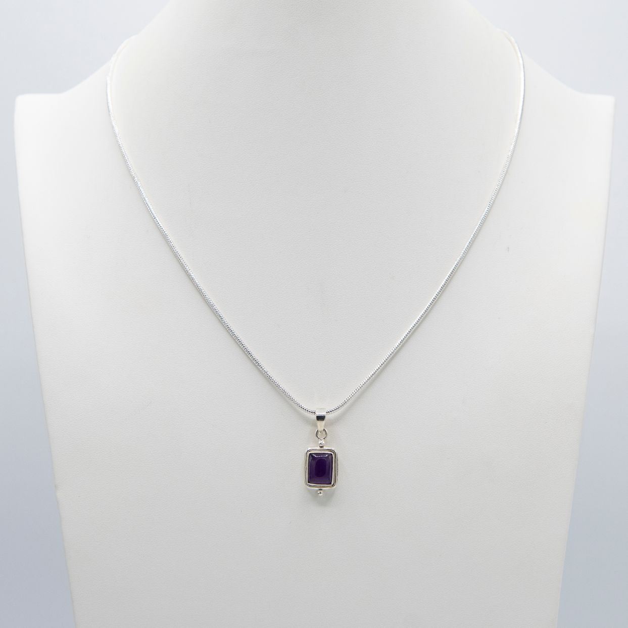 Rare Emerald Cabochon Cut Bolivian Amethyst Displaying A Vivid Even Royal Purple Hue. Mounted In Solid .925 Stamped Sterling Silver. Includes 20 "Chain.12.4 Total Gram Wt. Or 62 Ctttw.