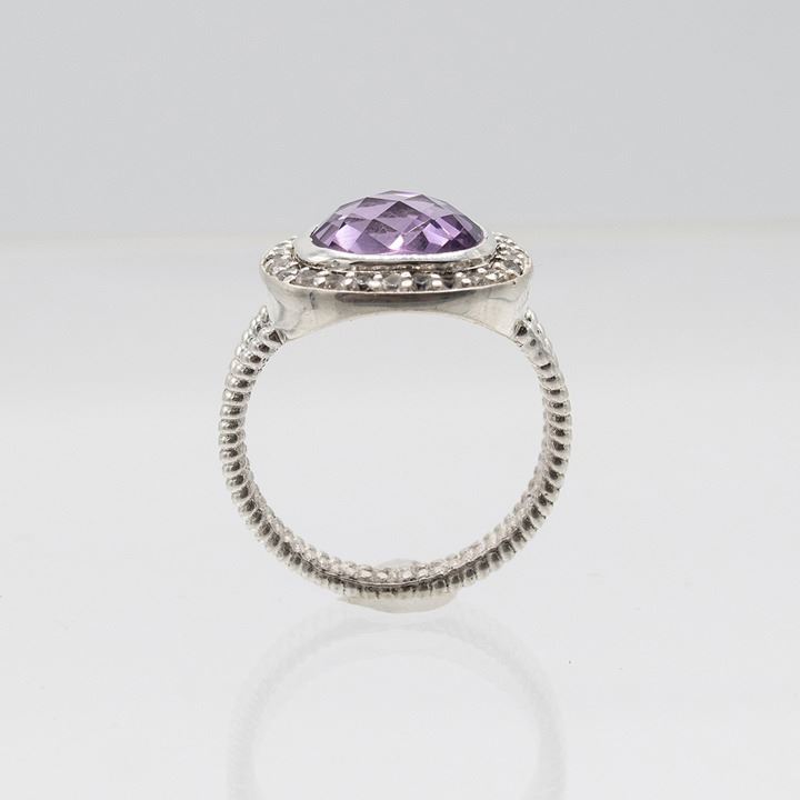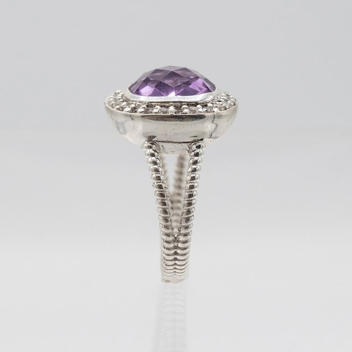 Beautiful Natural 4.8 CT Amethyst Ring. This amethyst ring is an eye clean cushion cut. Measuring 10 x 10 mm. and mounted in .925 sterling silver overlay. Size 8 . Gram total weight is approx. 5.3 grams.
