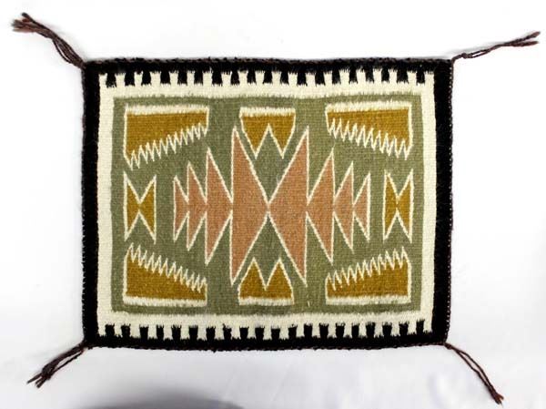 Beautiful Navajo Wool Textile Rug, 4 cornered tassels intact, measures 18'' x 14'', stunning colors