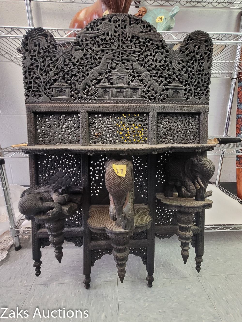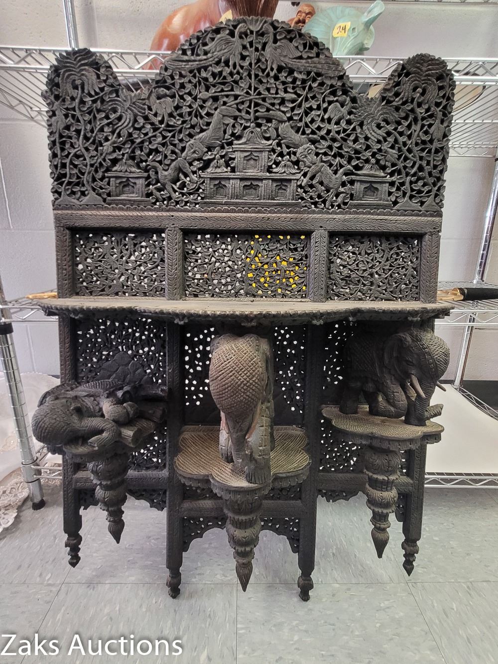Beautiful Old Wooden Indian Wall Sconce | Decor | Ceremonial with Carved Elephant. Not small at all and is very delicate.