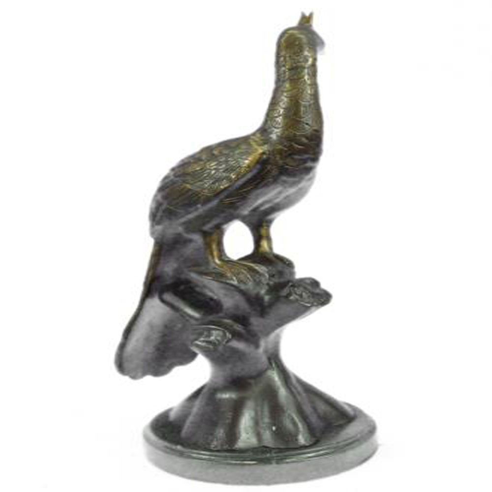 For those seeking beautiful Bronze birds that make a statement, perhaps a Bronze peacock might do an inspiring invite. This Bronze peacock Sculptures is created from expensive Bronze utilizing the lost wax method of casting Bronze Sculptures. The Statue highlights lovely details and the stride of a proud peacock atop a marble base. Bronze Dimensions with Marble Base: Height 14 X Width 8 inches. Weight: 6 LBS.