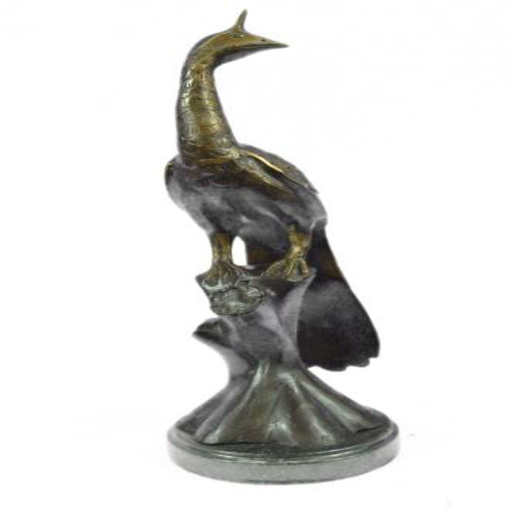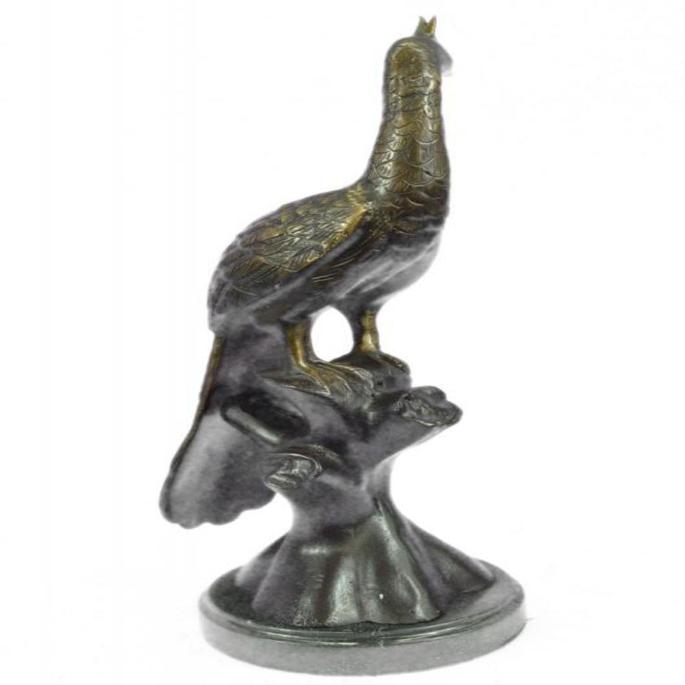 For those seeking beautiful Bronze birds that make a statement, perhaps a Bronze peacock might do an inspiring invite. This Bronze peacock Sculpture is created from expensive Bronze utilizing the lost wax method of casting Bronze Sculptures. The Statue highlights lovely details and the stride of a proud peacock atop a marble base. Dimensions: Height 14 X Width 8 inches. Weight: 6 LBS.