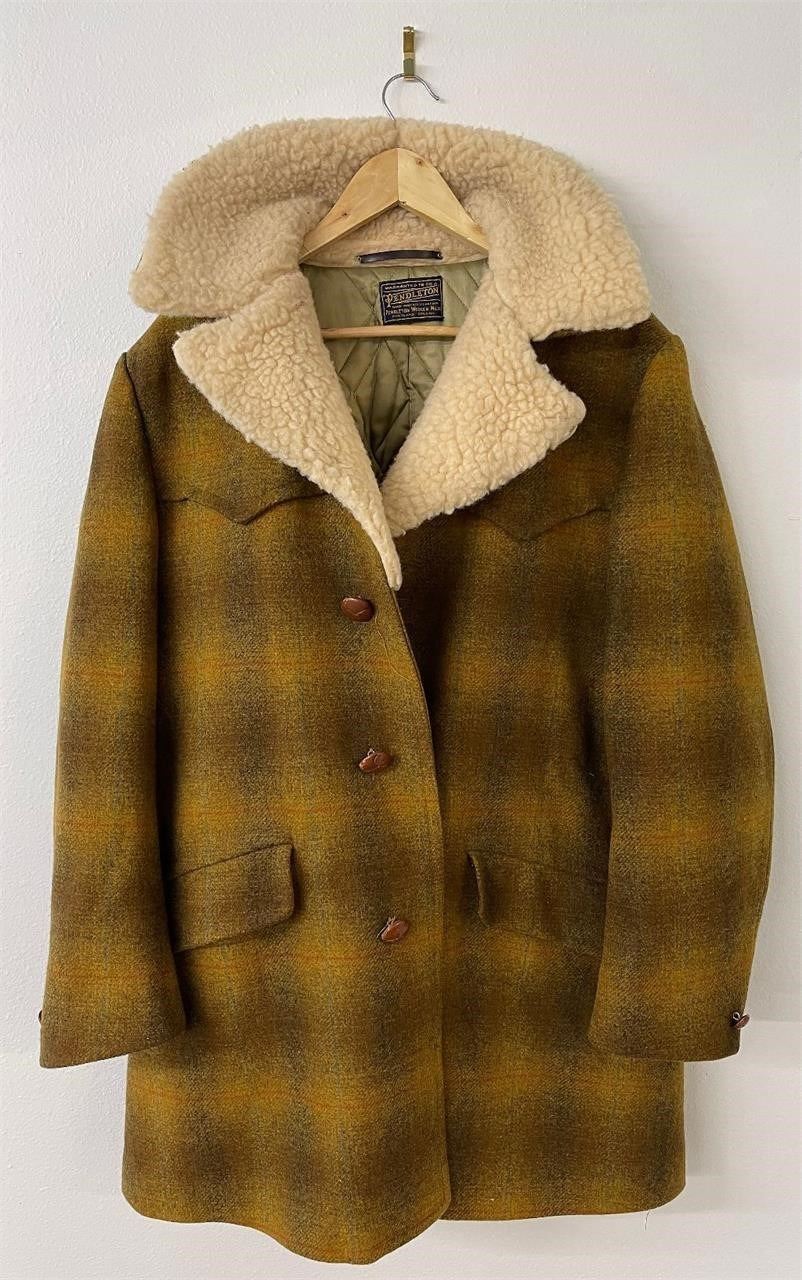 Superb Vintage Pendleton Car Coat with Sherpa Collar. 20" pit to pit, 41" long. No rips/tears/holes/repairs.