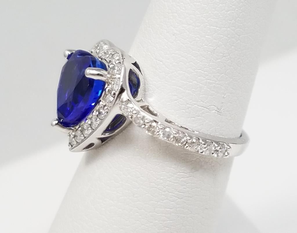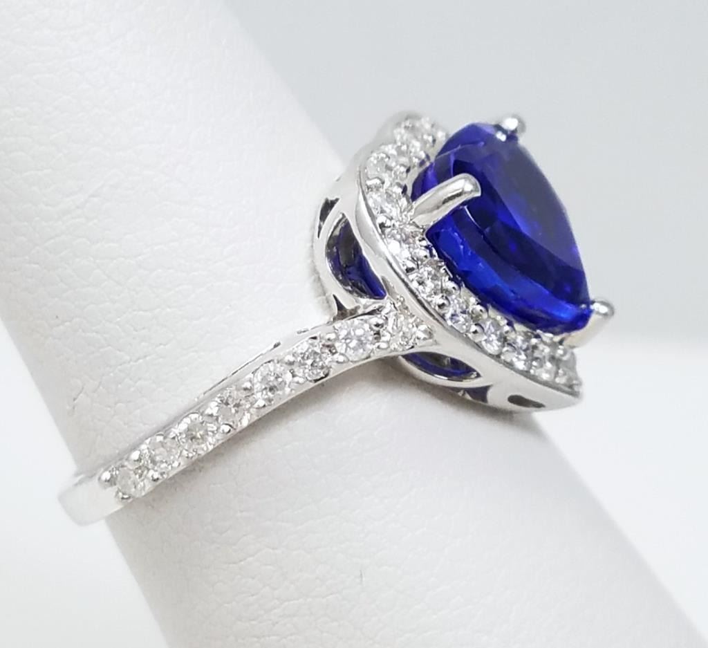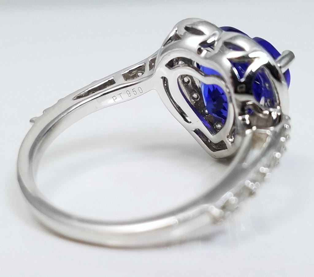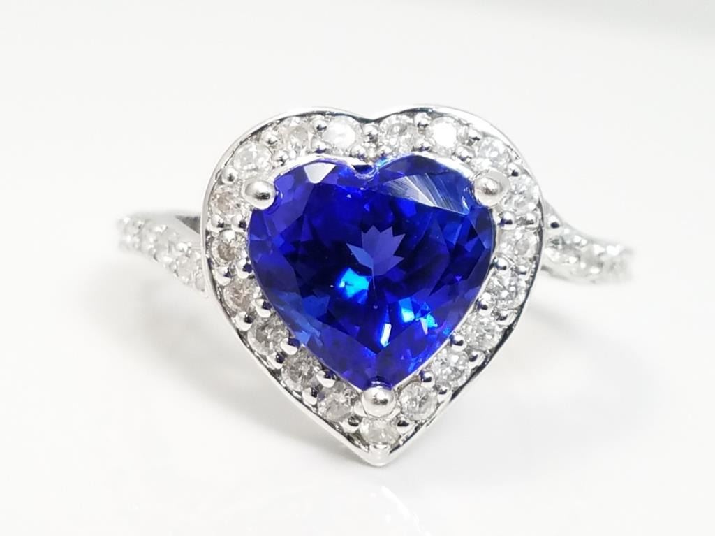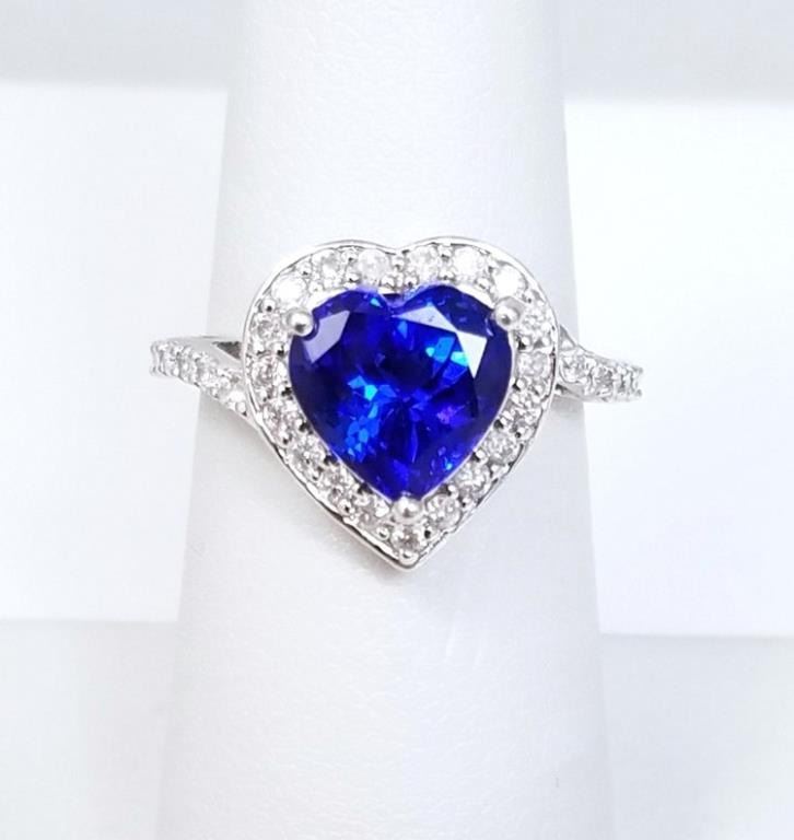 and Diamond Ring featuring heart shaped AAA Quality Violet Blue Tanzanite weighing approx. 3.00 carats accented with 35 round cut Diamonds weighing approx. 0.60 carats set in a heart shape custom Platinum setting, size 6. Retail $4,000-$6,000