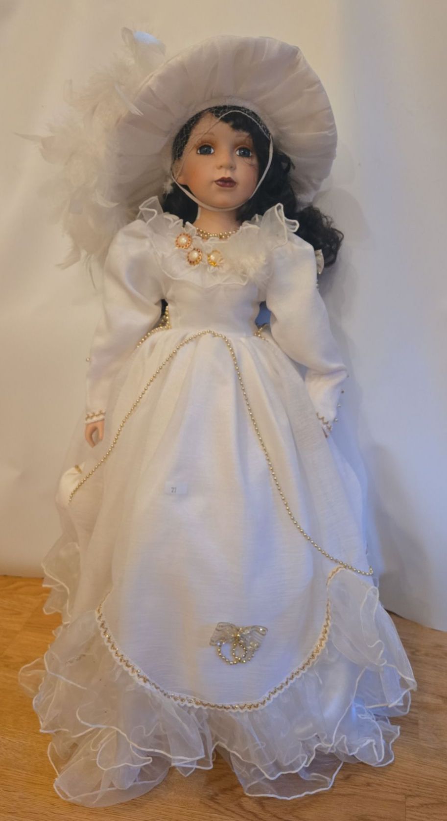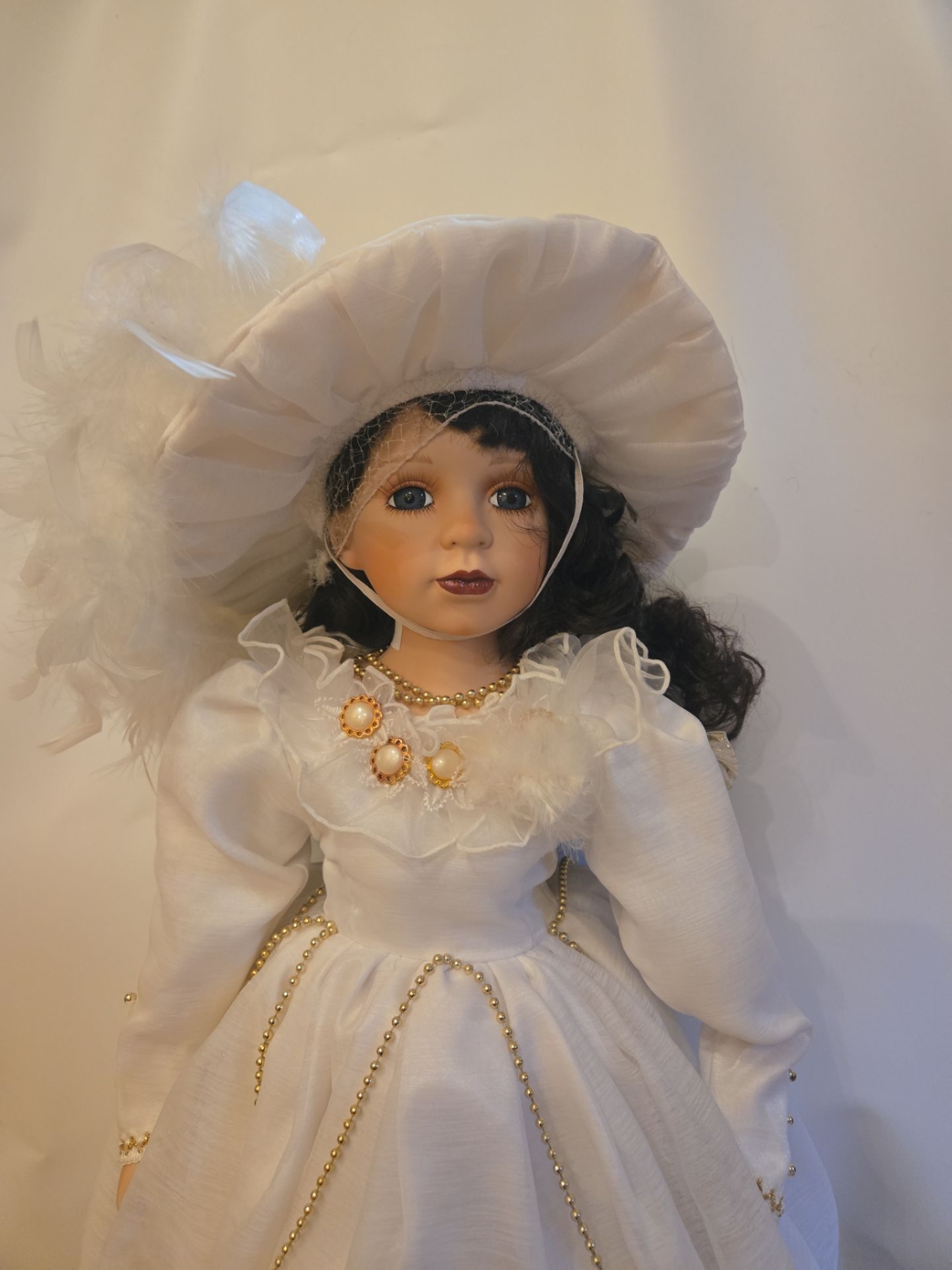 Beautiful Porcelain Doll Going to the Ball w/ Feathered Hat, 28T