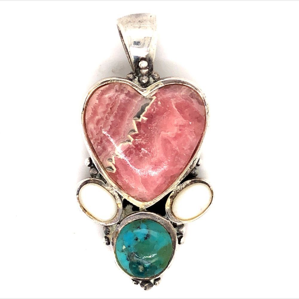Beautiful Relios Pink Jasper Mother of Pearl and Turquoise silver 925 PendantL 1 1/2 " W 3/4 " bale 1/4 "
