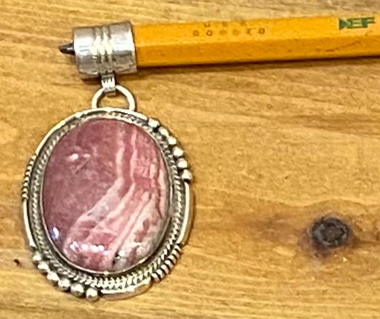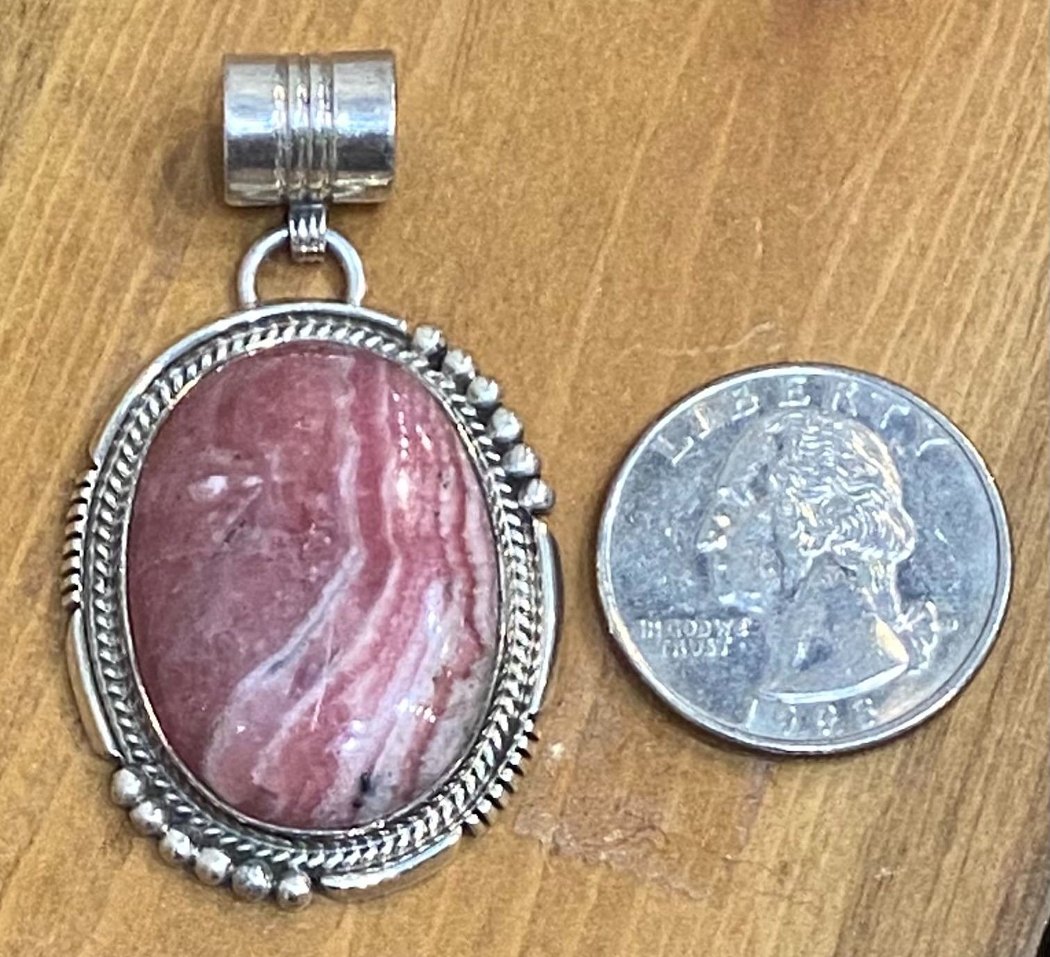 Rhodochrosite has been a highly favored stone over the last year. Great Bale that will accommodate several necklace sizes.