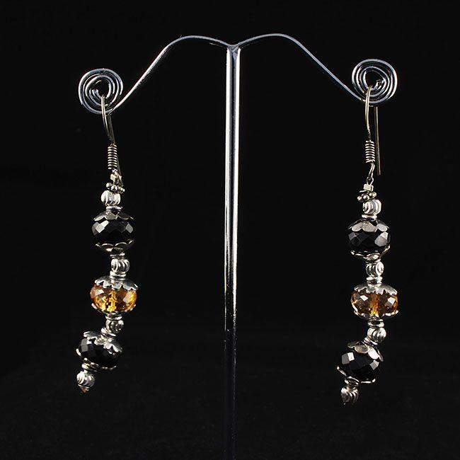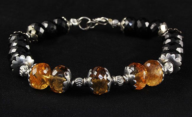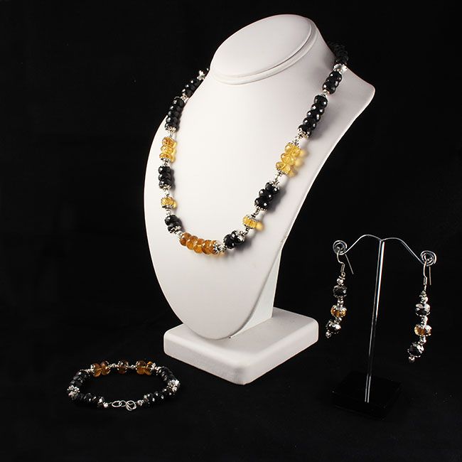 Beautiful Set of Natural Black Onyx and Citrine Necklac **|**|** 742ctw Black Onyx and Citrine Necklace, Bracelet & Earring in Silver ; MSRP: $300