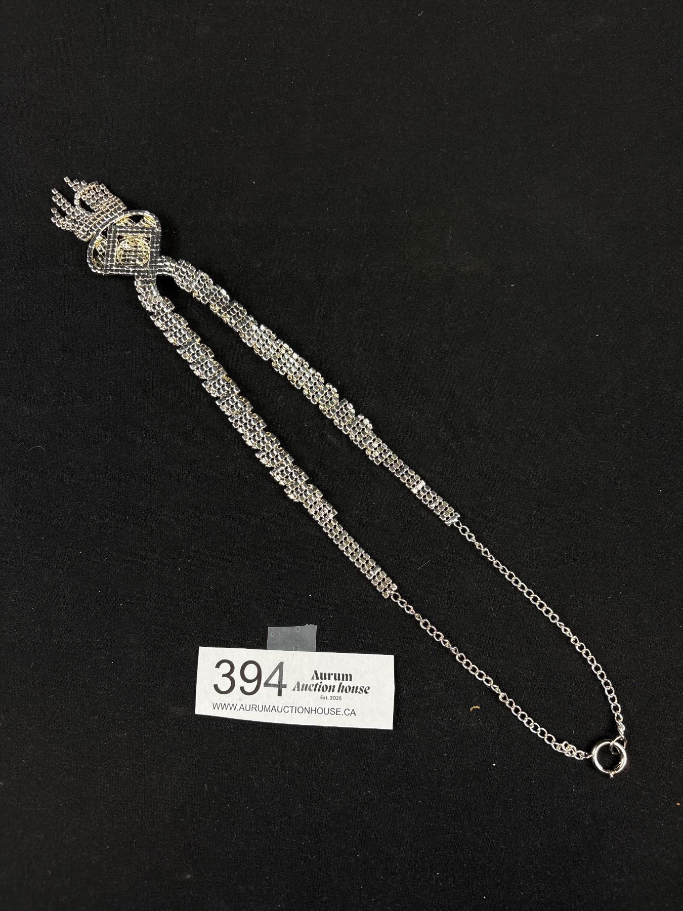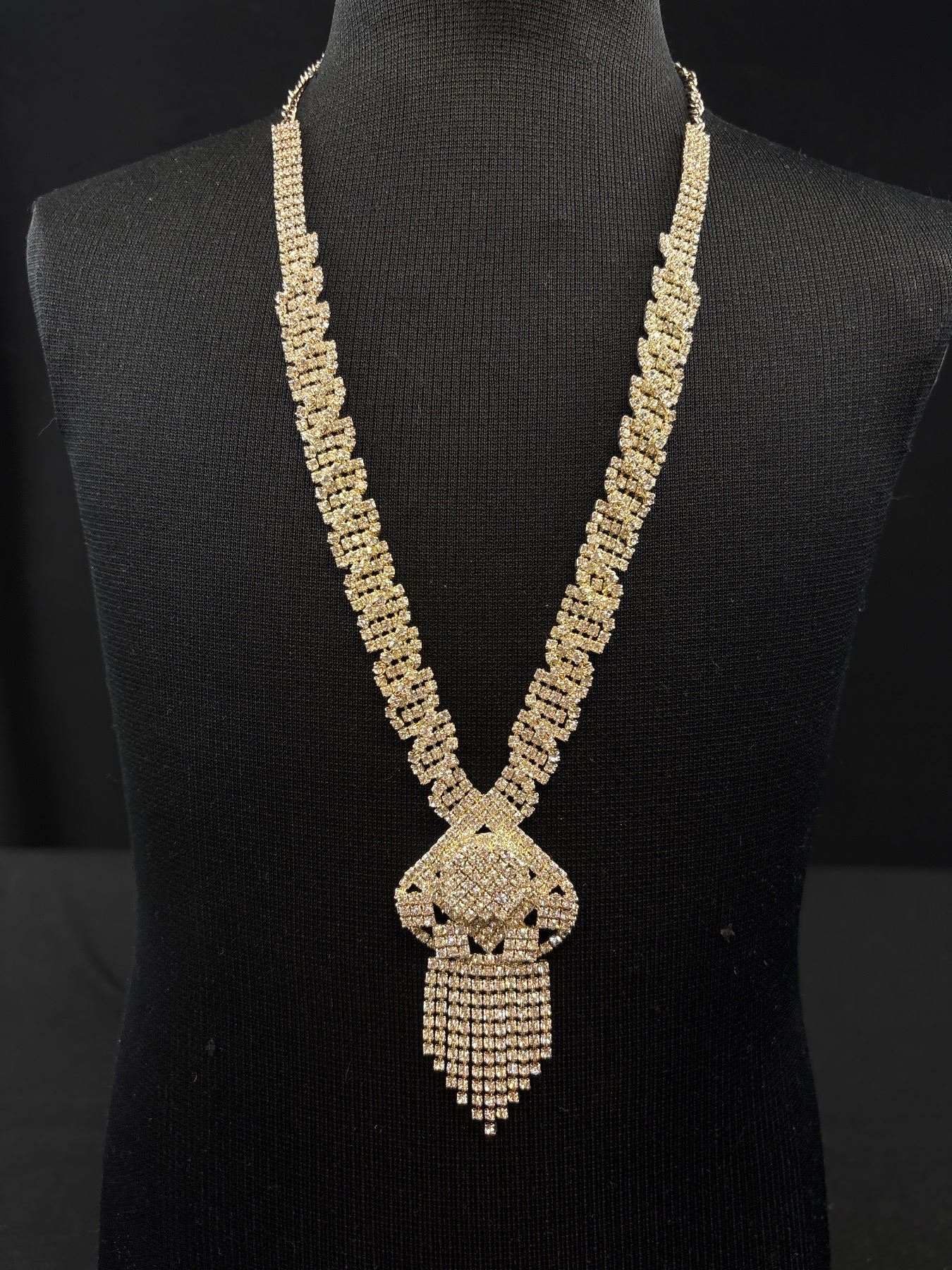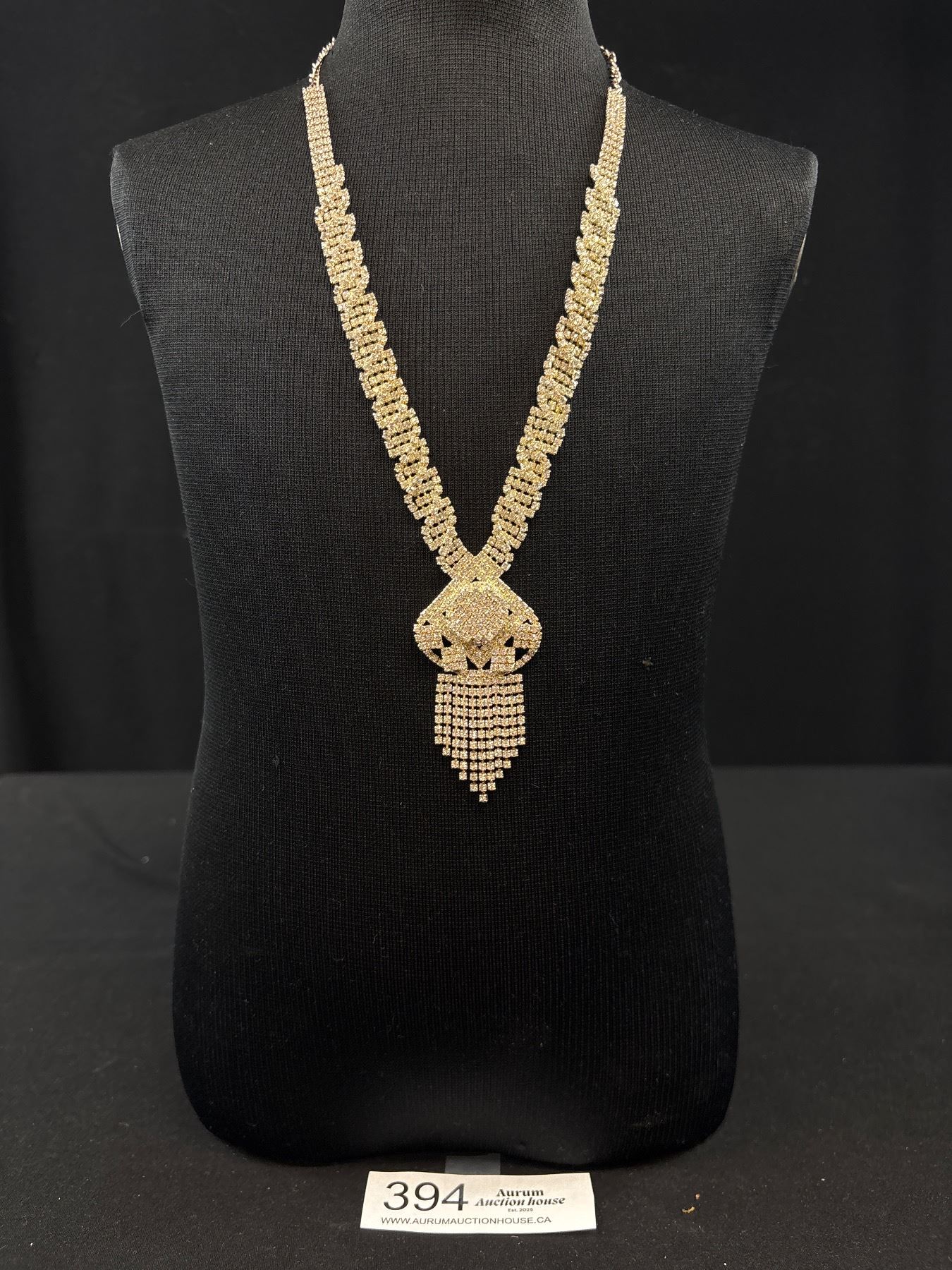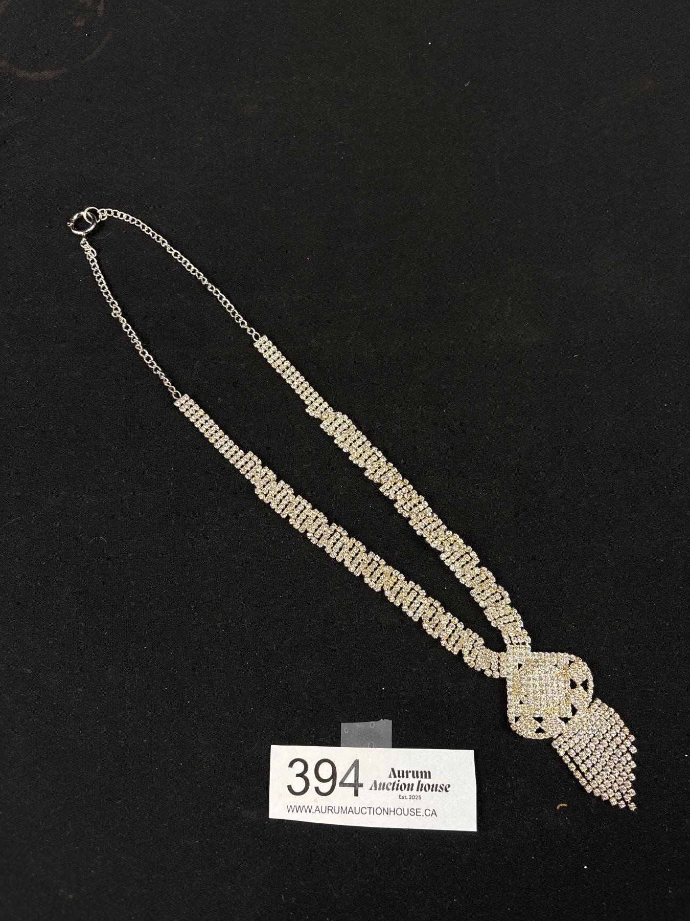 Beautiful Silver Plated w/ Rhinestones Necklace 20 Inches Length