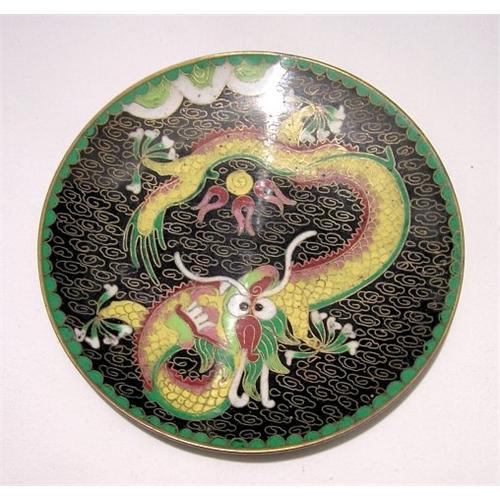 Small Japanese Plate Cloisonné. In good conditions, as you can see in the pictures. The decoration colors are made with Enamel.  Representing a Dragon.