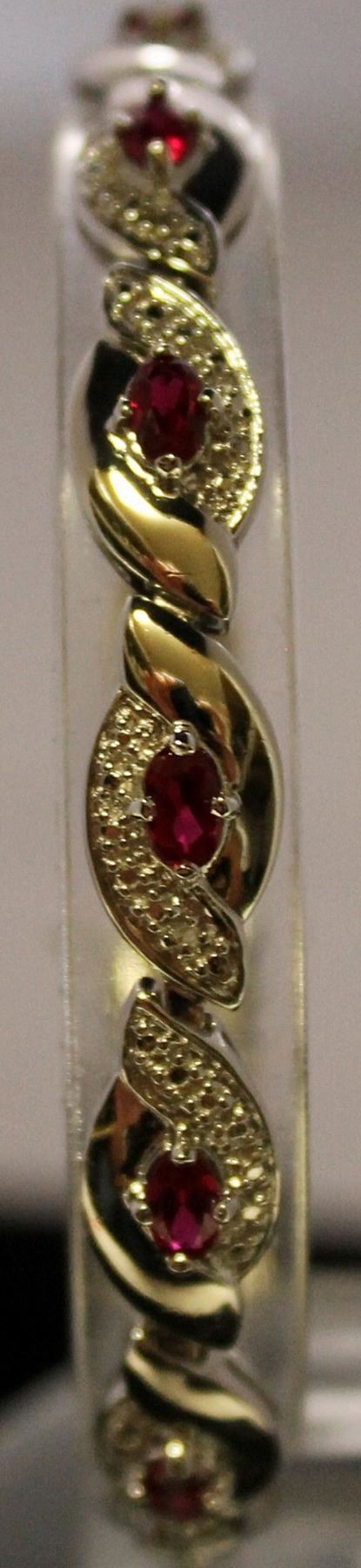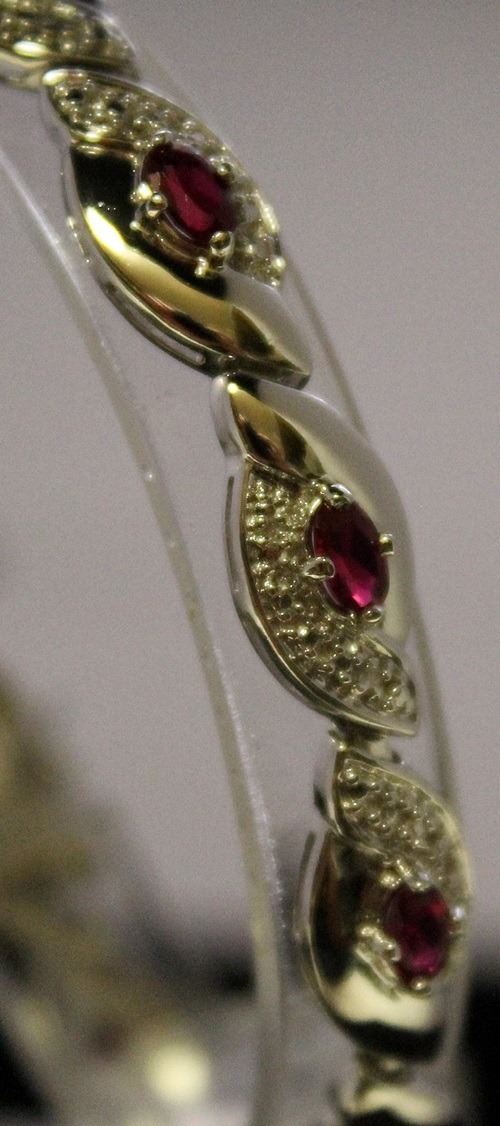 Sterling Silver Lab Rubies & White Sapphire Bracelet. Twt approx 10 cts.