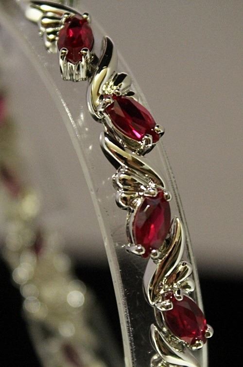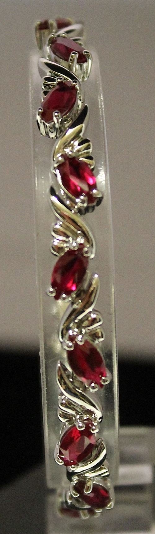 Beautiful Sterling Silver Lab Ruby & White Topaz Bracelet. Twt approx 25 cts.