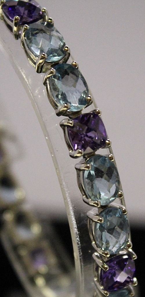 Beautiful Sterling Silver Lab Tanzanite & Topaz Bracelet. Twt approx 30 cts.