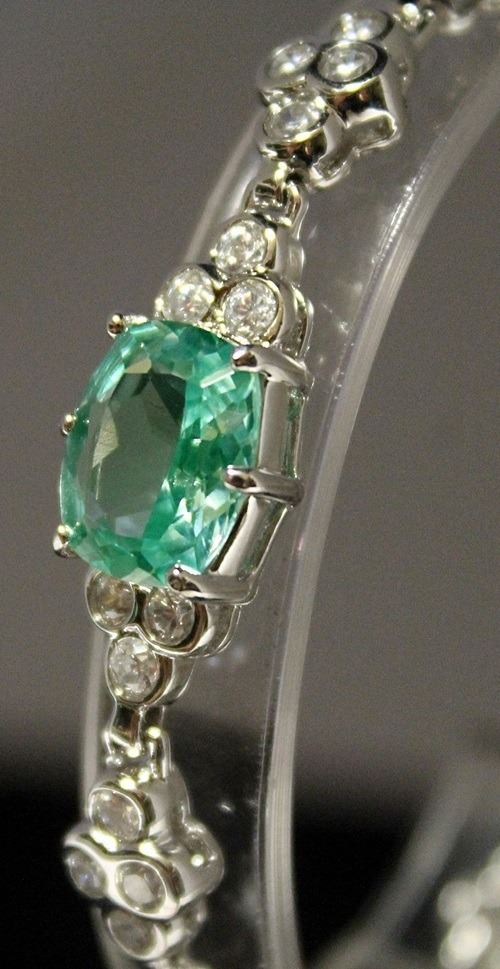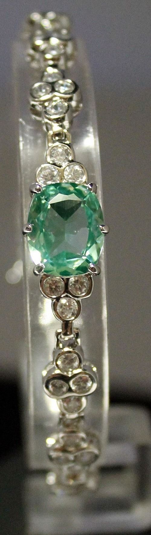 Beautiful Sterling Silver Lab Tourmaline & White Sapphire Bracelet. Twt approx 15 cts.