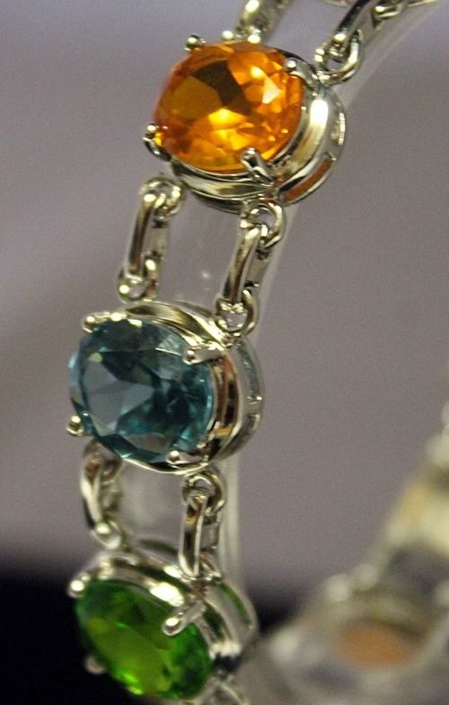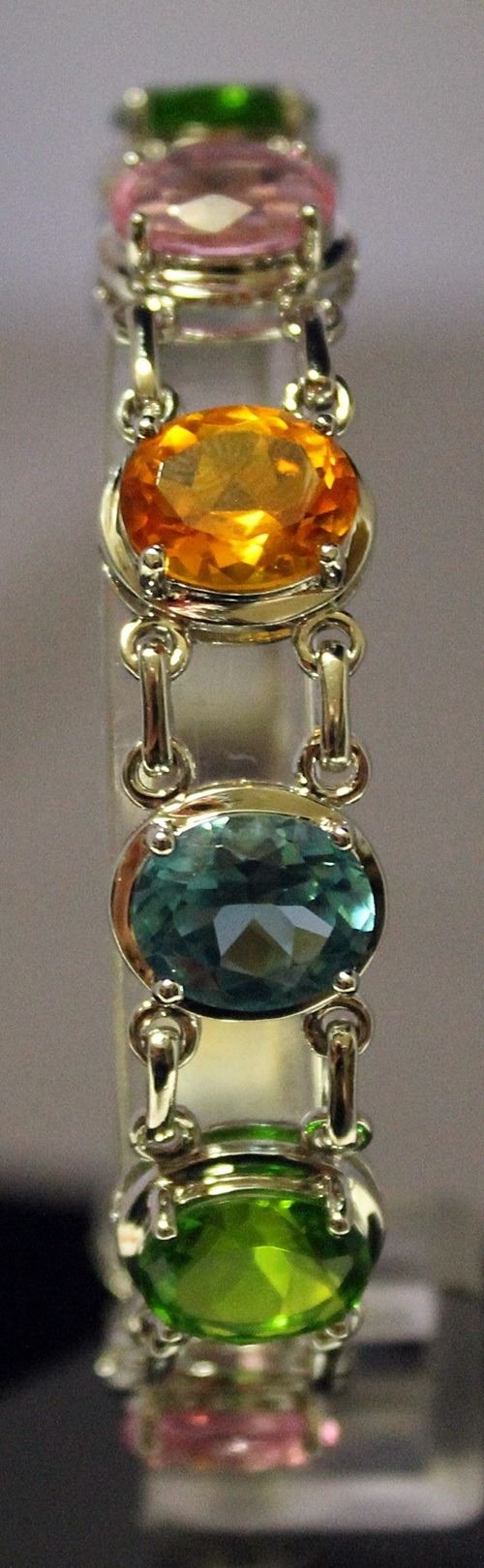 Beautiful Sterling Silver Multi Lab Gems Bracelet. Pink Sapphire, Peridot, Topaz, Golden Sapphire & White Topaz twt approx 50 cts.