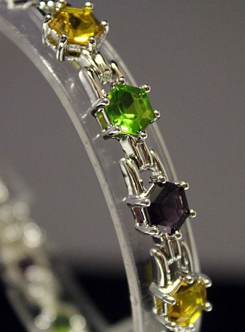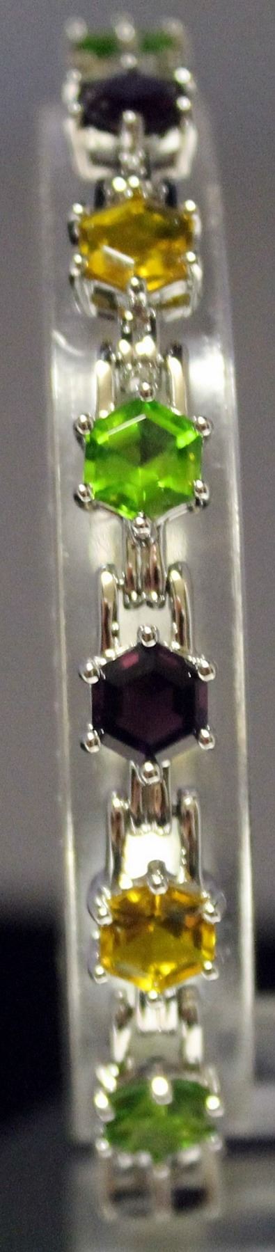 Beautiful Sterling Silver Multi Lab Gems Bracelet. Citrine, Peridot & Garnets twt approx 25 cts.