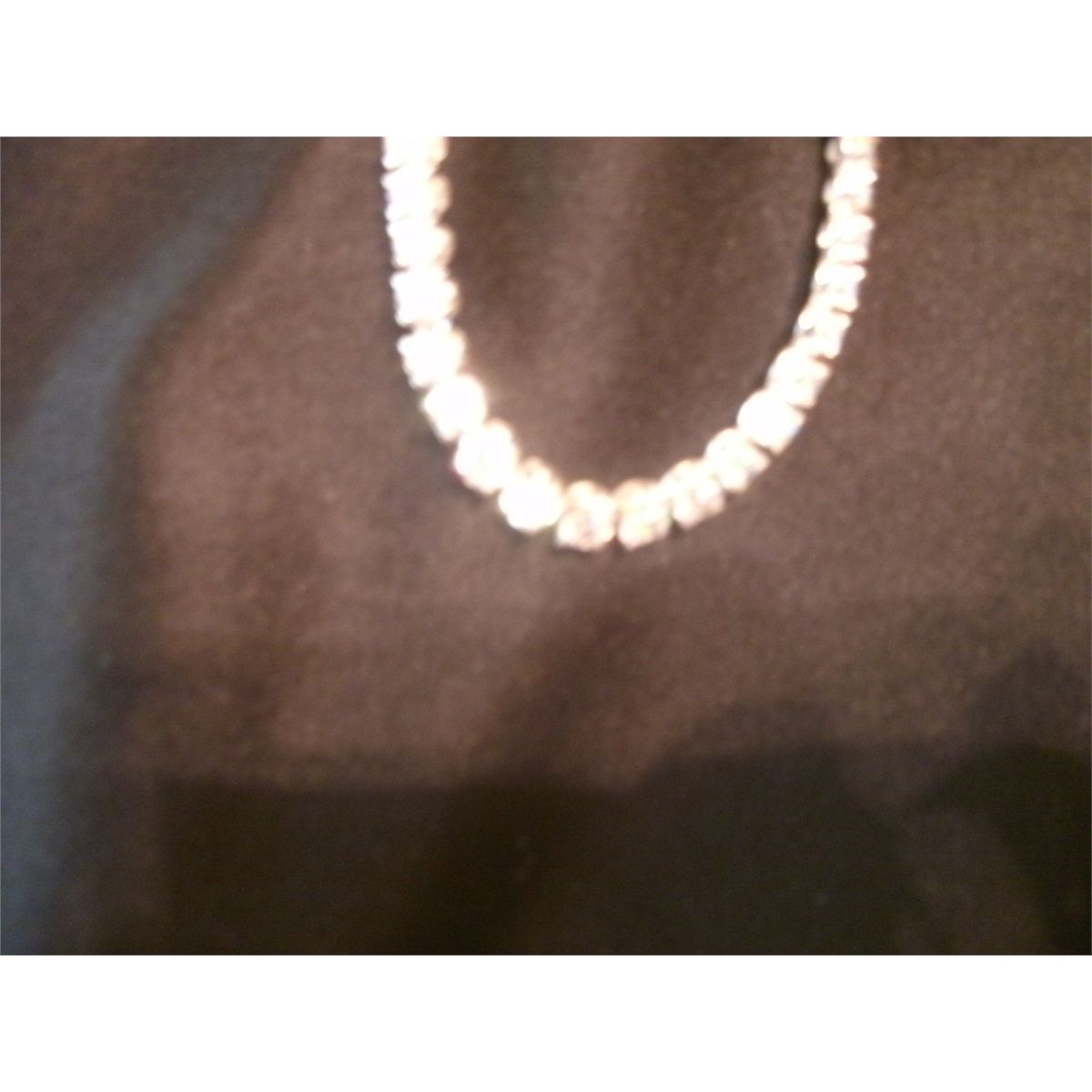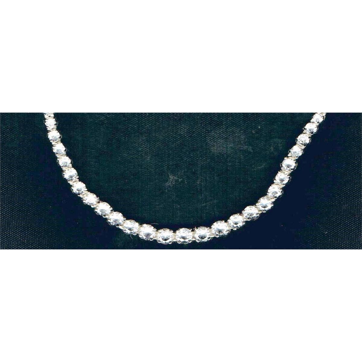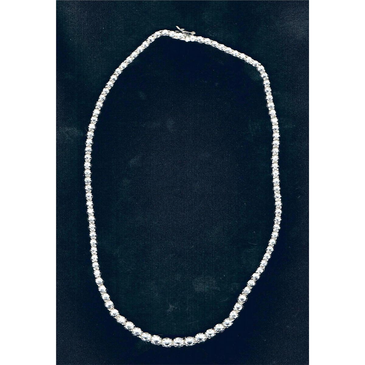Beautiful graduated round cut cubic zirconia tennis necklace. The pictures do not do this justic. The sparkle and colors are amazing. Gorgeous like diamonds! Very elegant look. Stones graduate from approximately 1/8 inch to 1/4 inch at the center. Necklace measures 16 inches long. Hidden Box Clasp.