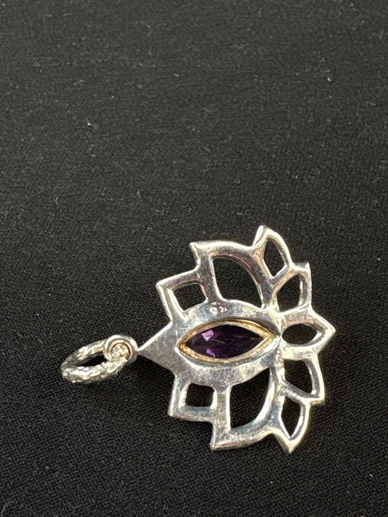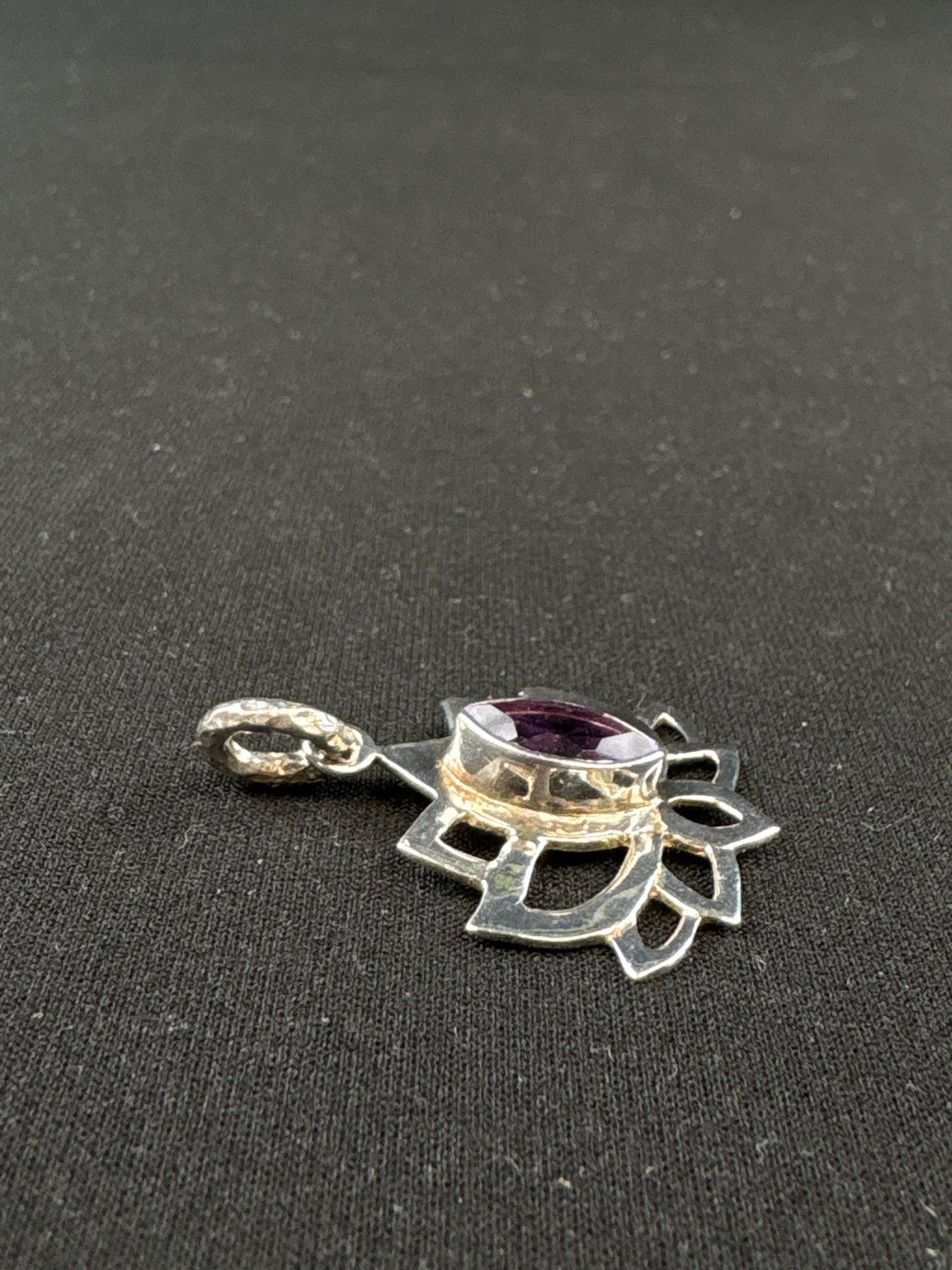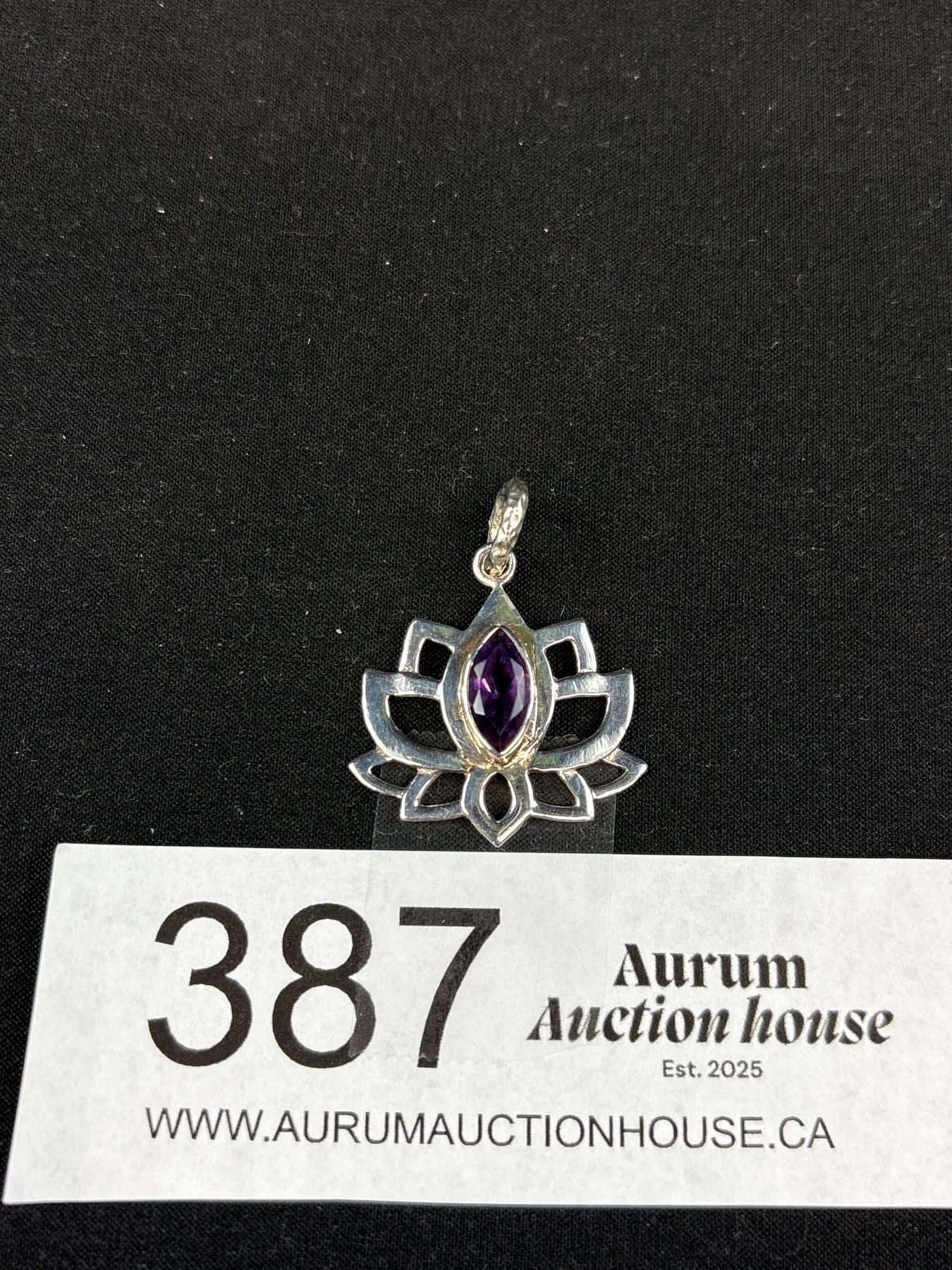Beautiful Sterling Silver w/ Amethyst Stone Pendant Marked 925
