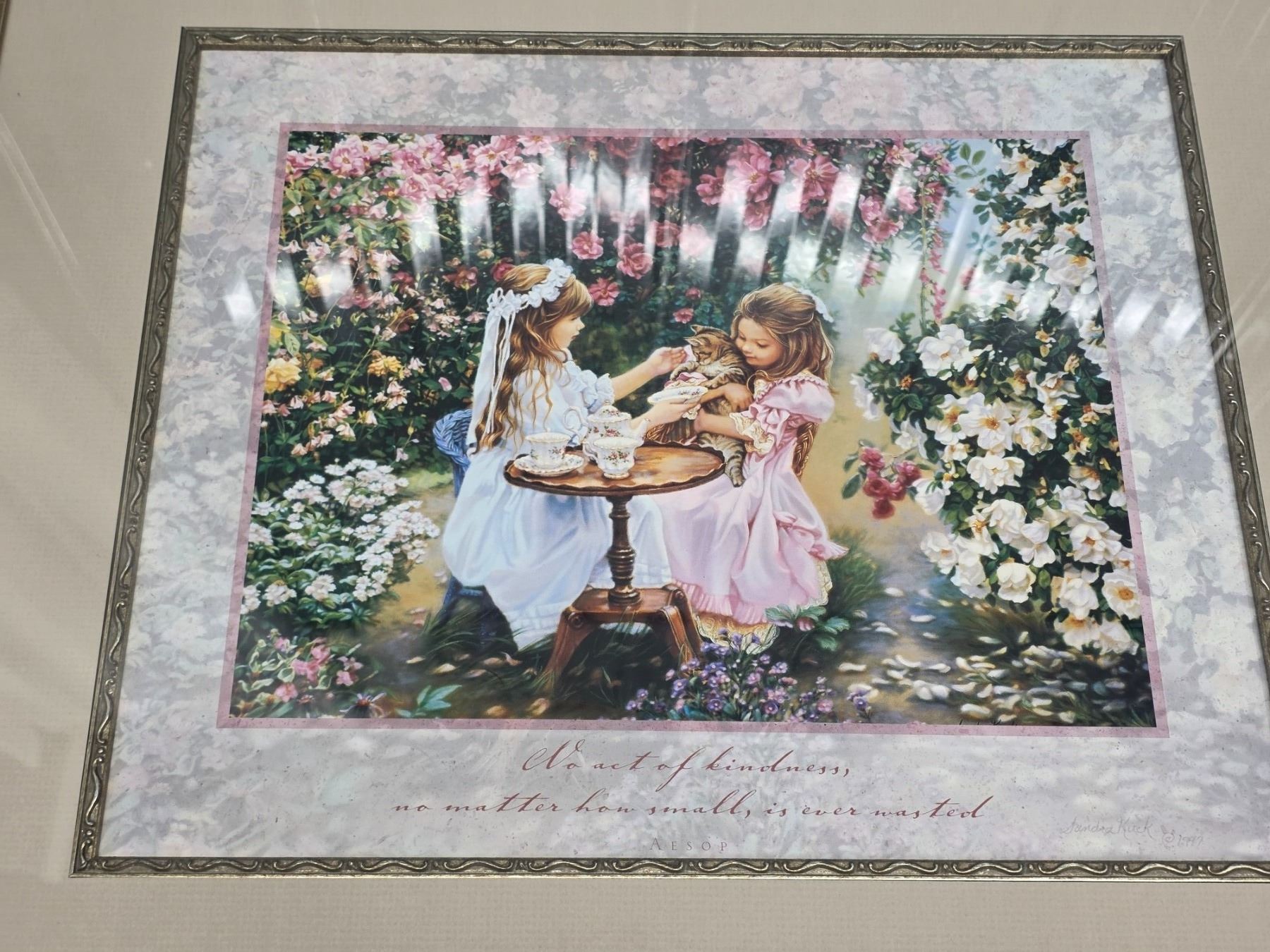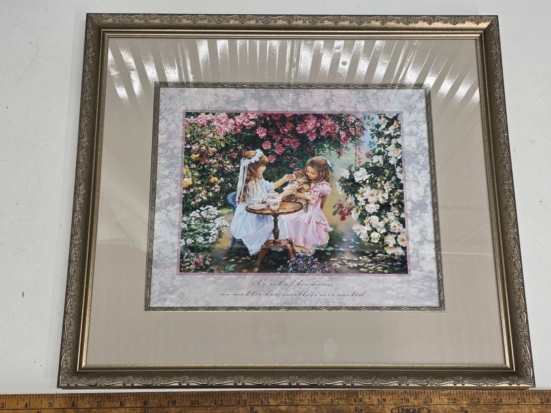 Beautiful Tea Party Print - "An Act of Kindness" by Sandra Kuck - Professionally Framed 20x18 inch - 1997