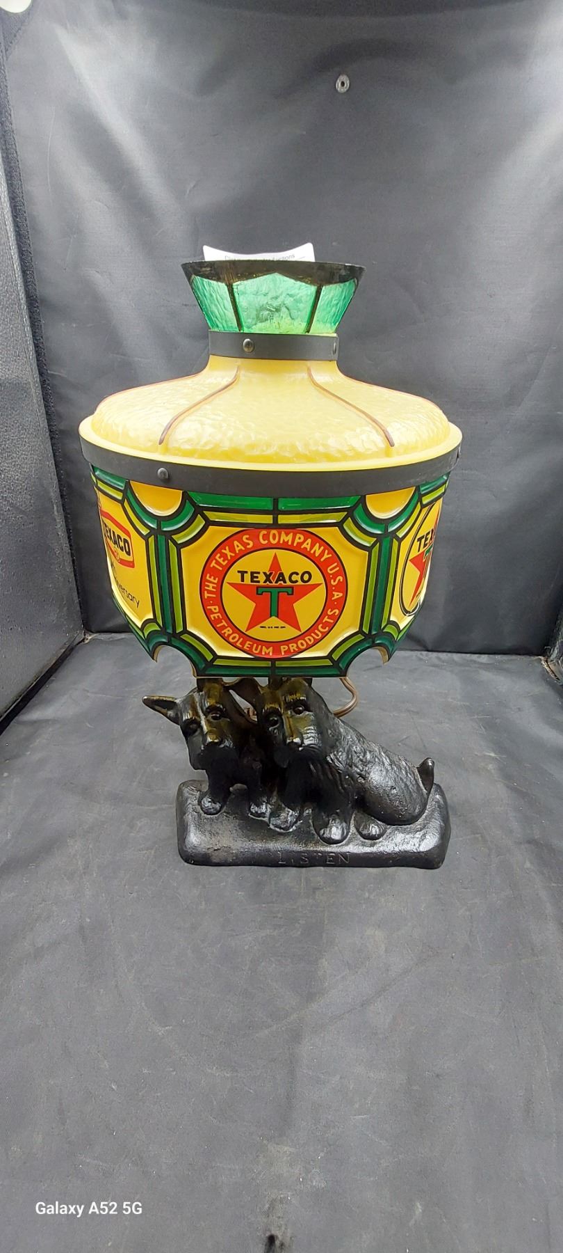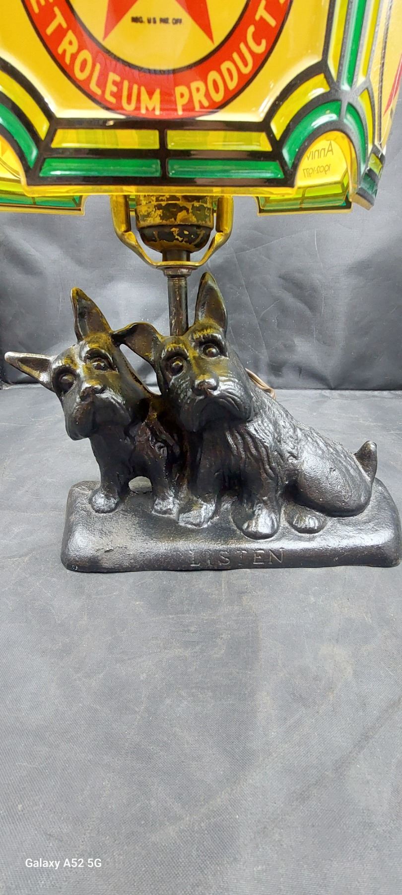 Beautiful Texaco 75th Anniverciry Scotty Dogs Table Lamp with cast iron base, 14" tall