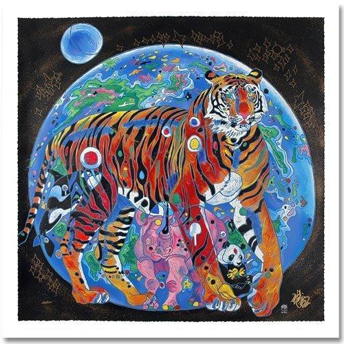This Limited Edition Serigraph on Canvas is Beaming with a Vivacious Energy and has the World Wildlife Foundation Symbol in the lower right corner! "Beautiful Tommorrow" measures approx: 40.00 X 40.00 inches, is Hand Signed by TIEFENG and comes with a Certificate of Authenticity!