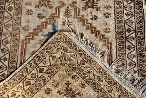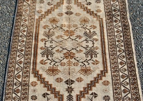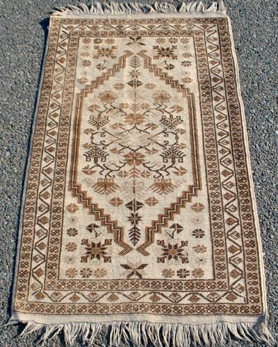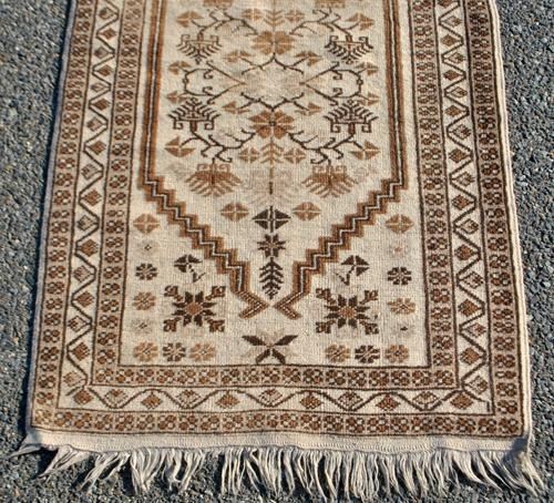 Beautiful traditional design semi antique Persian Tabriz, size 2.6 x 4 feet, made of fine quality lamb's wool pile on cotton foundation, all natural vegetable dye, this beautiful rug employs a lovely set of traditional tabriz floral motifs allover on a rich cream background and is contrasted nicely by a lighter colored floral border. Hand woven in Tabriz, Iran.