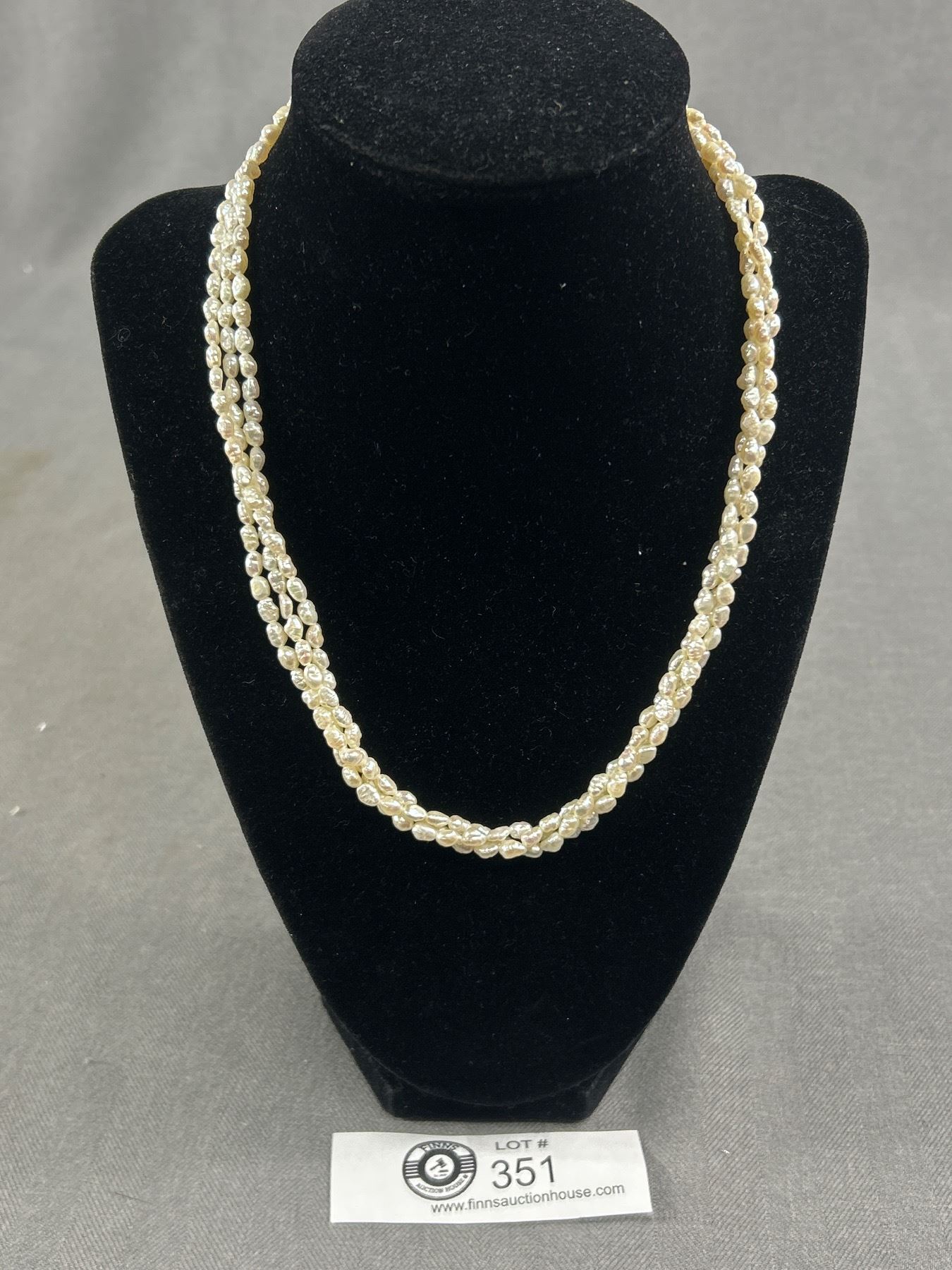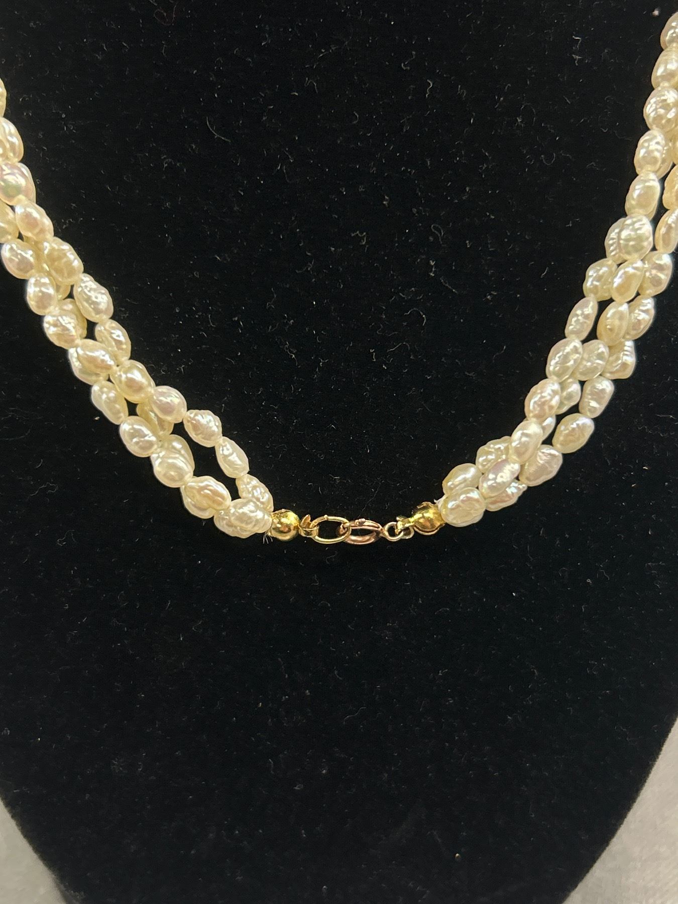 Beautiful Twisted Triple Strand Genuine Pearl Necklace w/ 10k Gold Clasp