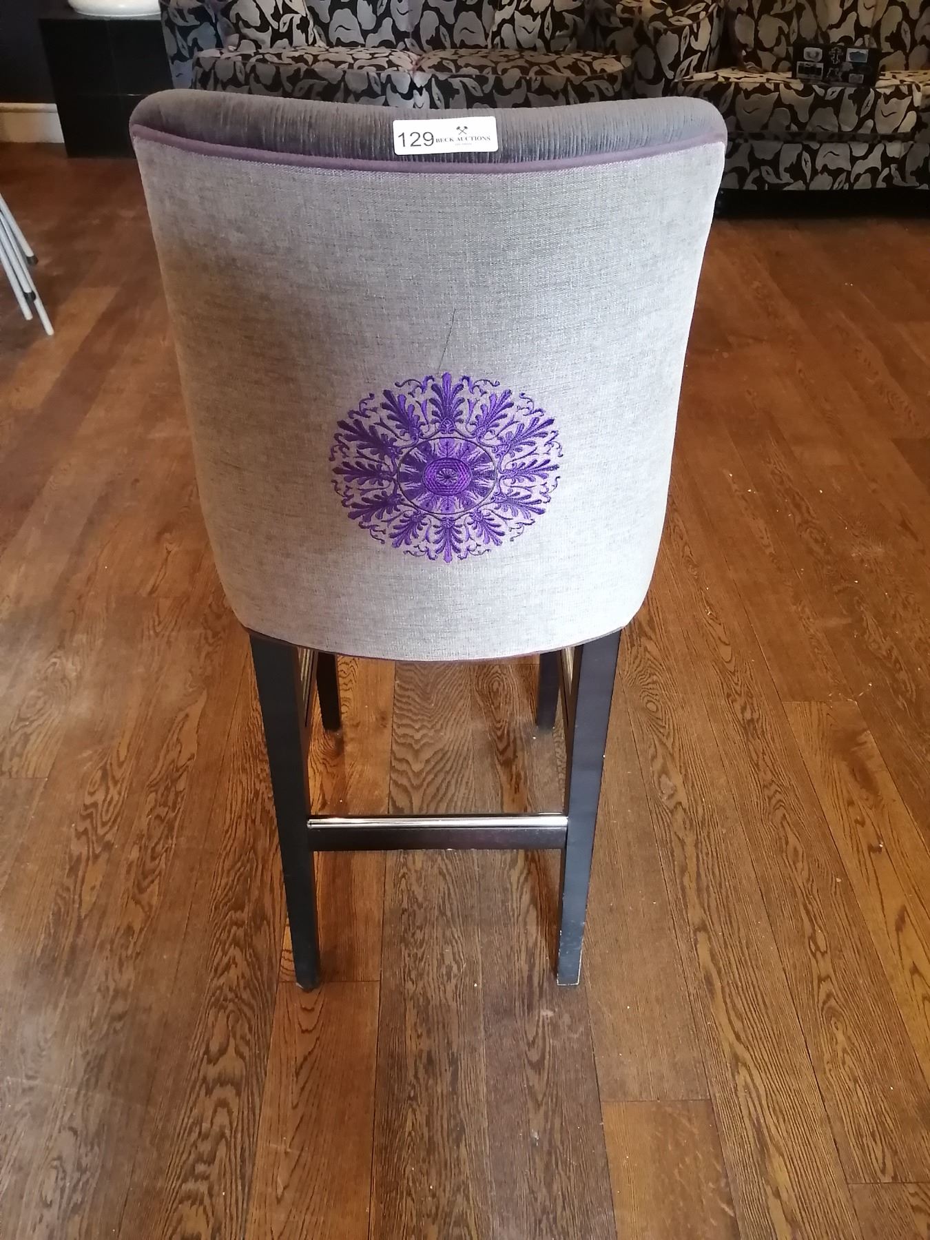 Beautiful Upholstered Bar Stool w/ Floral-Like Embroidered Design on Back