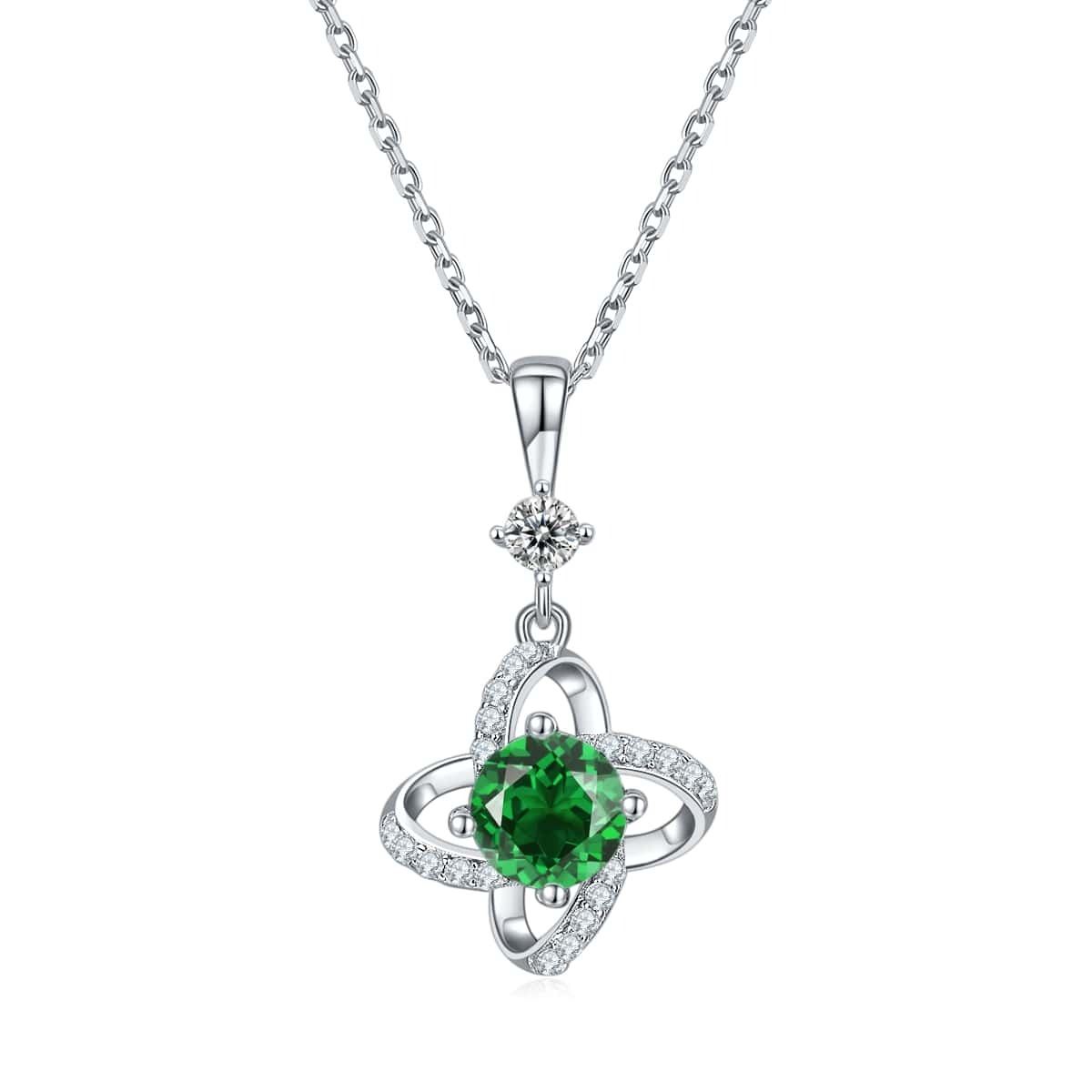 Ladies Beautiful Lab Created Emerald Pendant. This fine lab emerald is a near flawless 1 ct brilliant round cut. Mounted in .925 solid sterling silver. It is complimented by 14 Kt White Gold Overlay, which gives the pendant its high polish and shine. It is also tarnish resistant. The total weight is approx. 1.7 grams including an 18" silver chain.