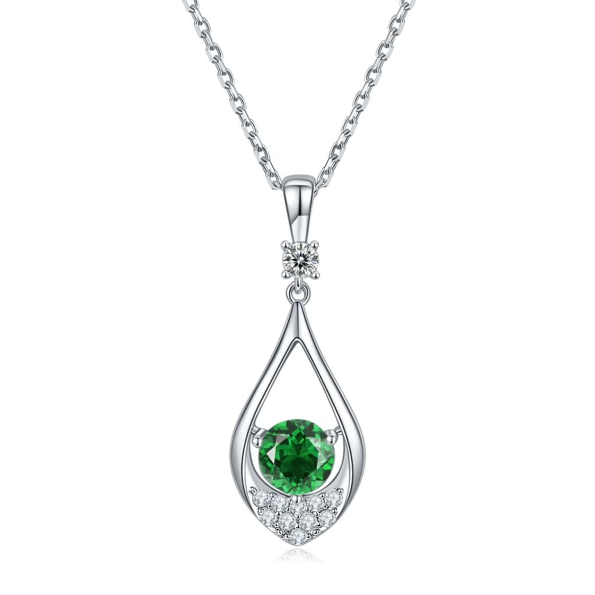 Ladies Beautiful Lab Created Emerald Pendant. This fine lab emerald is a near flawless 1 ct brilliant round cut. Mounted in .925 solid sterling silver. It is complimented by 14 Kt White Gold Overlay, which gives the pendant its high polish and shine. It is also tarnish resistant. The total weight is approx. 1.7 grams including an 18" silver chain.